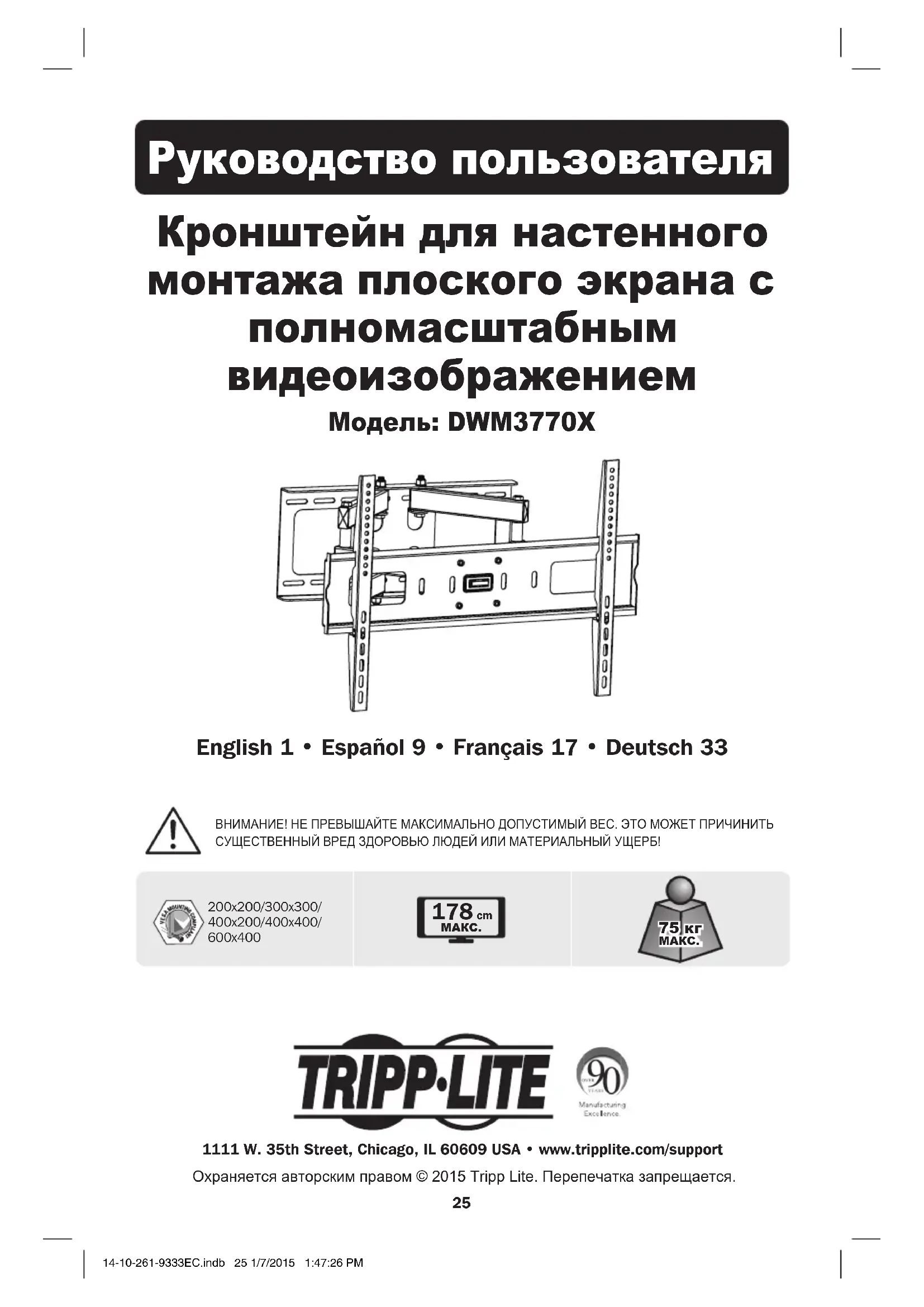 РУКОВОДСТВО ПОЛЬЗОВАТЕЛЯ DWM3770X Tripp Lite
