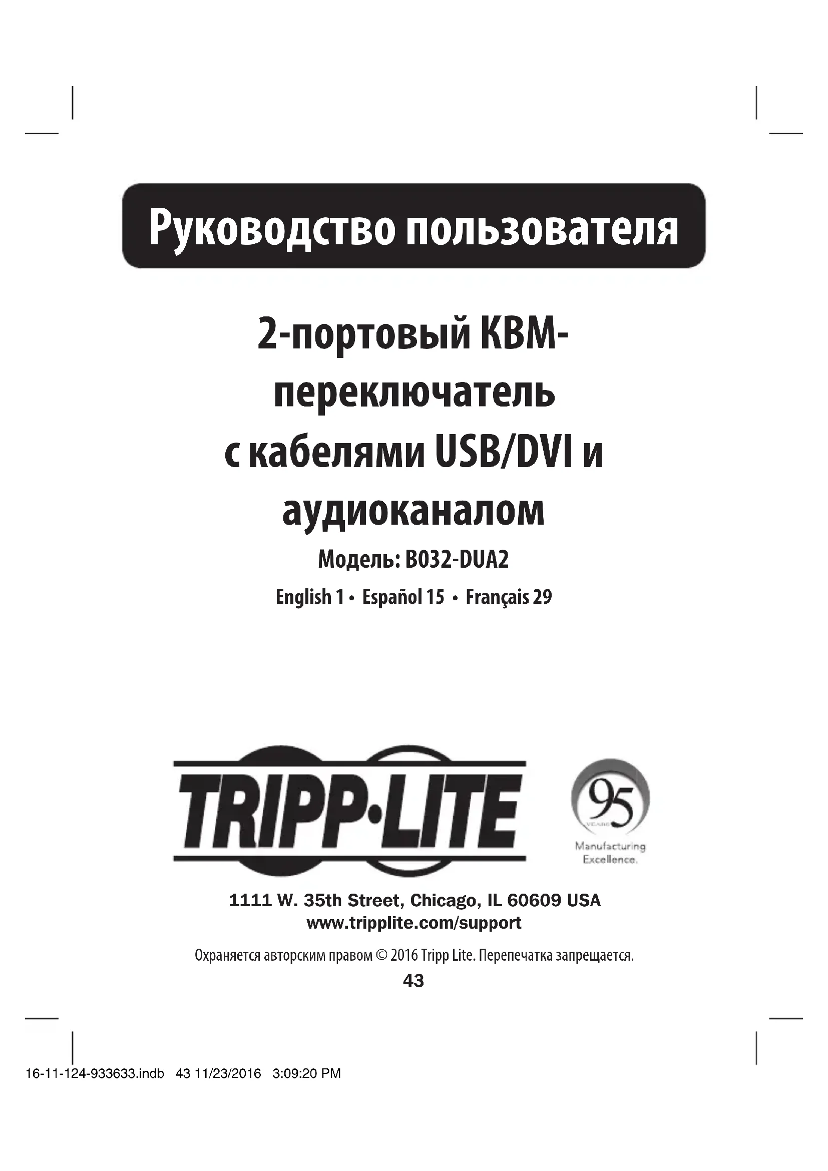 РУКОВОДСТВО ПОЛЬЗОВАТЕЛЯ B032DUA2 Tripp Lite
