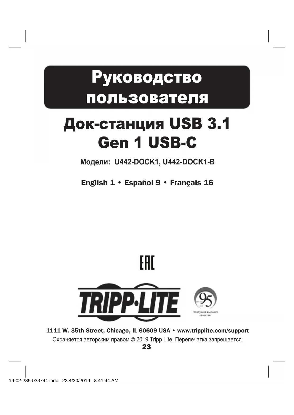 РУКОВОДСТВО ПОЛЬЗОВАТЕЛЯ U442DOCK1B Tripp Lite