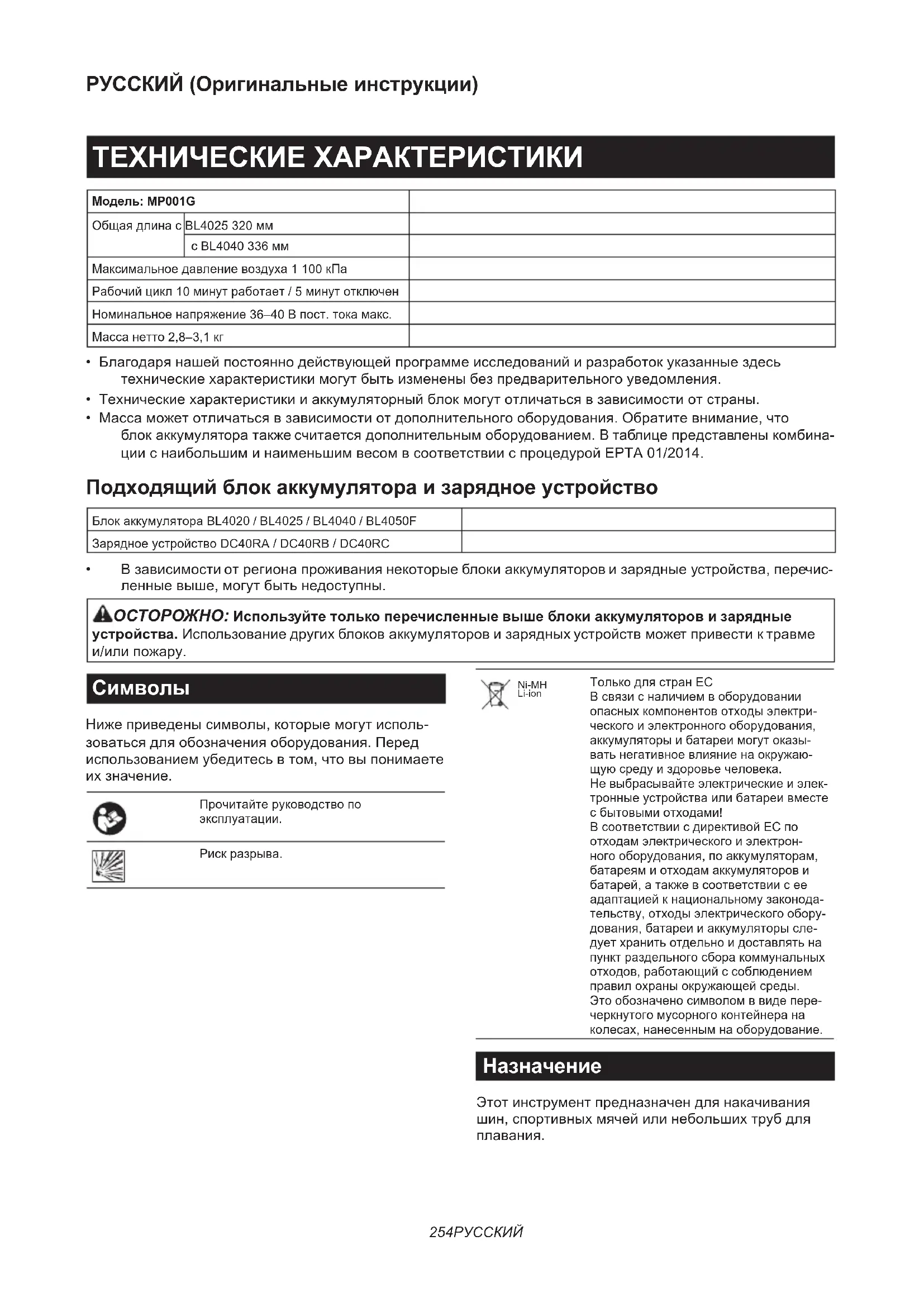 Найдите руководство к устройству бесплатно MP001G MAKITA в формате PDF.