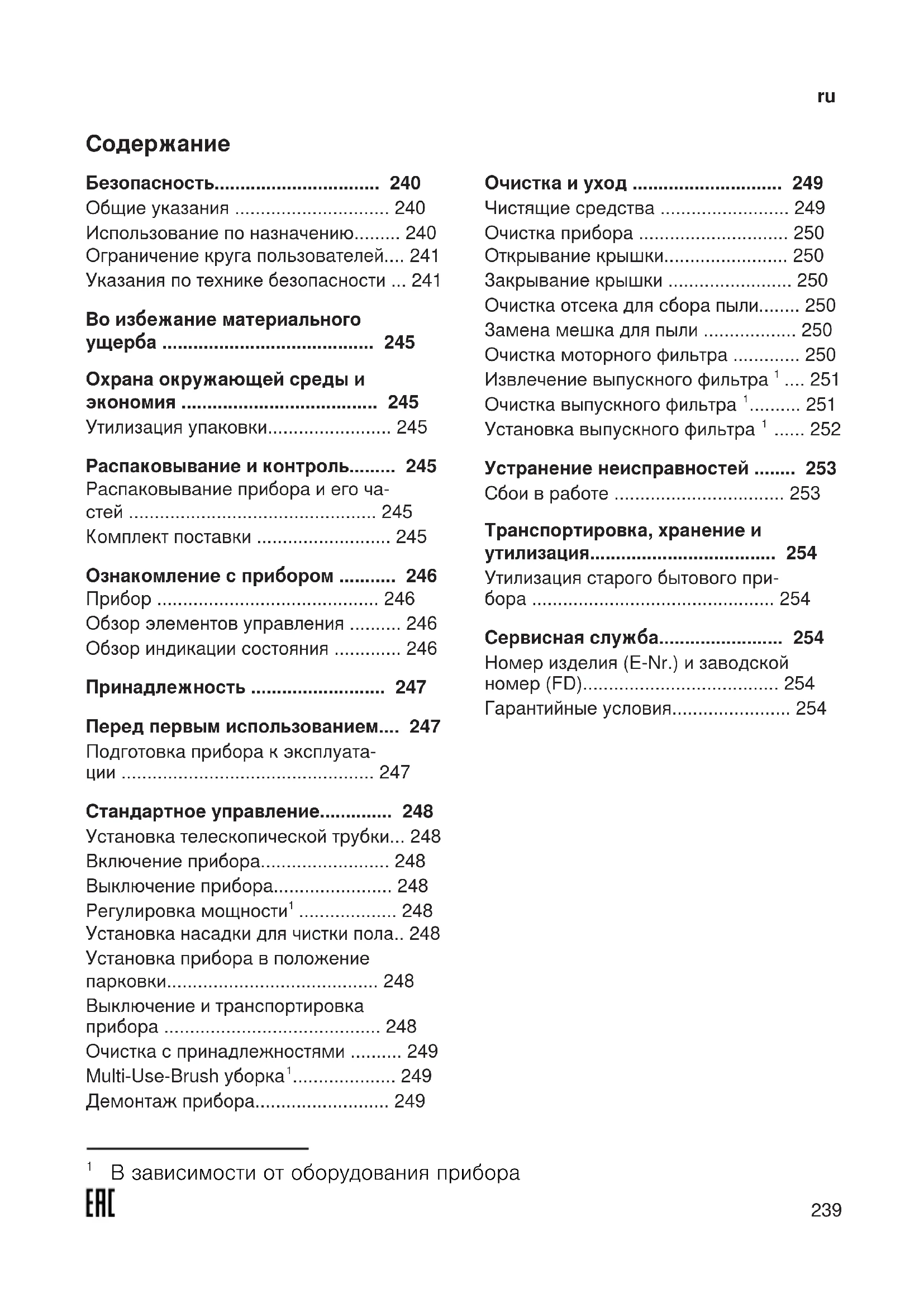 - Очистка и уход p. 249