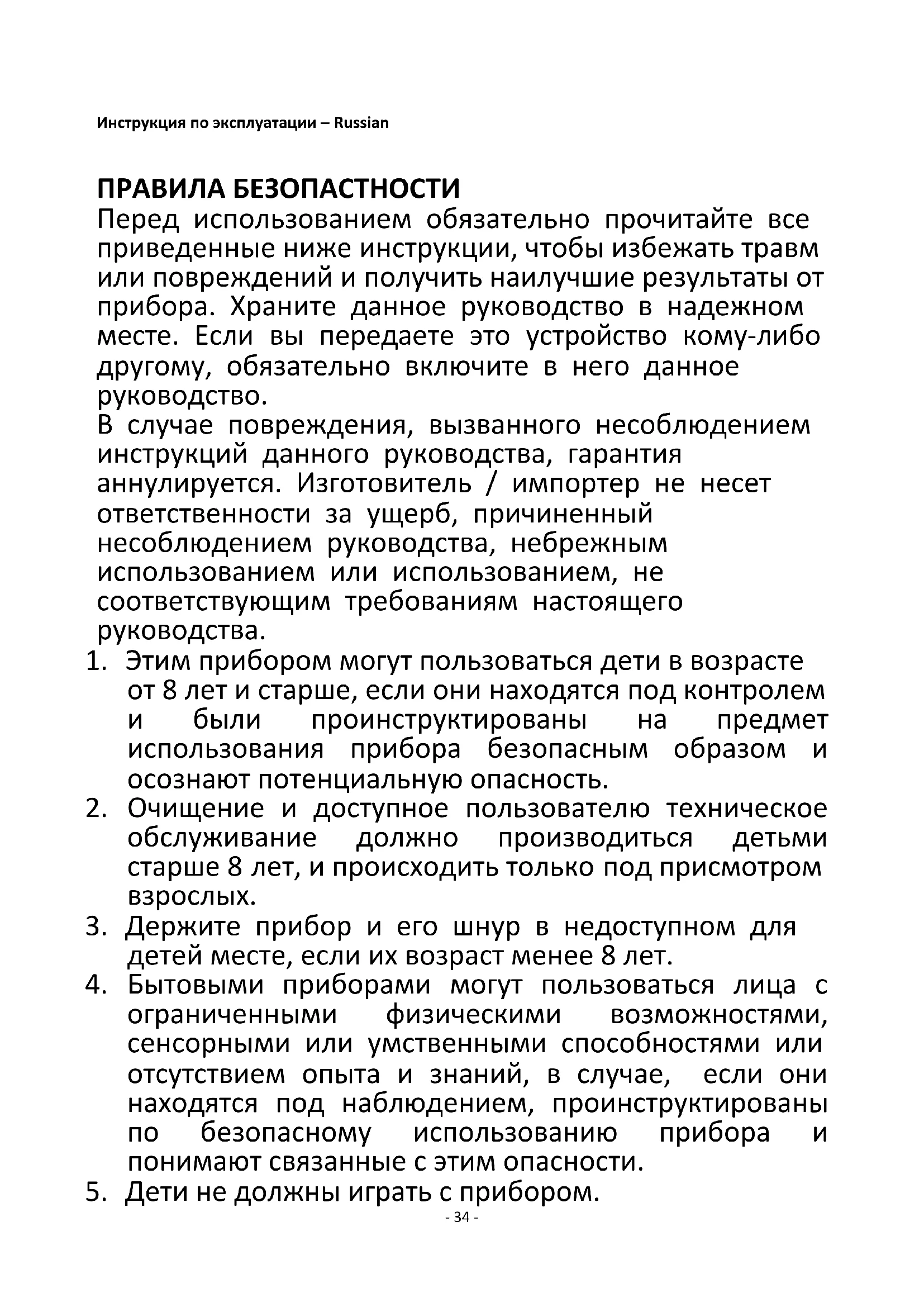 5. Дети не должны играть с прибором.- 35 -