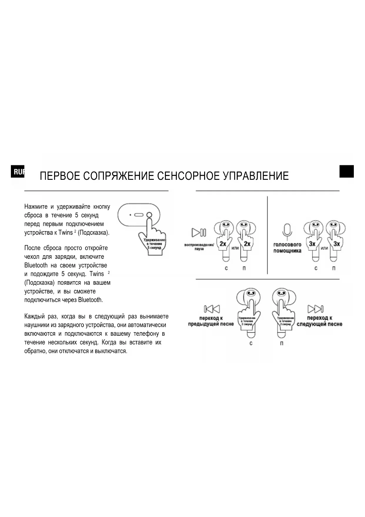 (Подсказка) появится на вашем устройстве, и вы сможете подключиться через Bluetooth. ПЕРВОЕ СОПРЯЖЕНИЕ СЕНСОРНОЕ УПРАВЛЕНИЕ RU RUНаушники