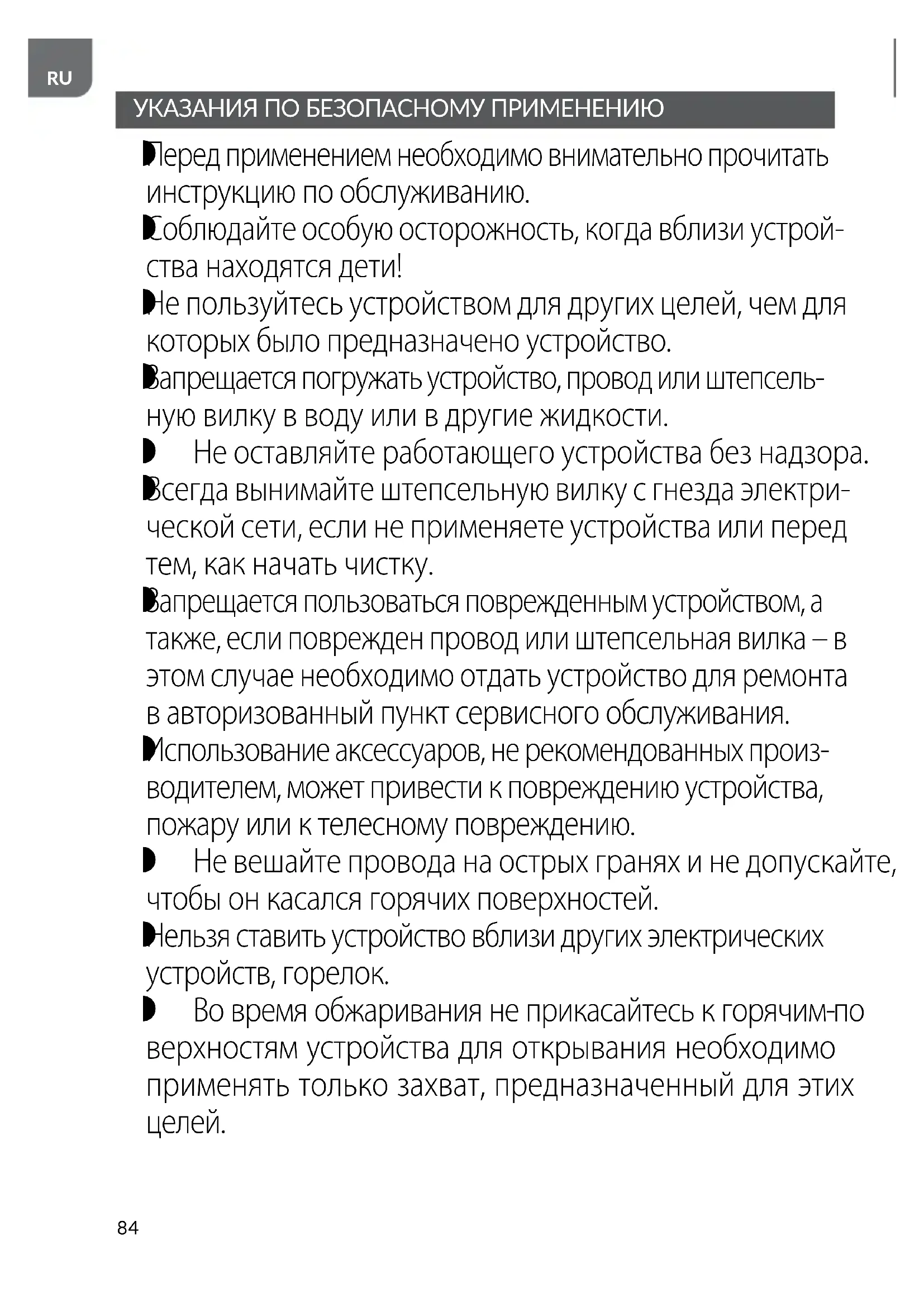 Соблюдайте особую осторожность, когда вблизи устрой- ства находятся дети!