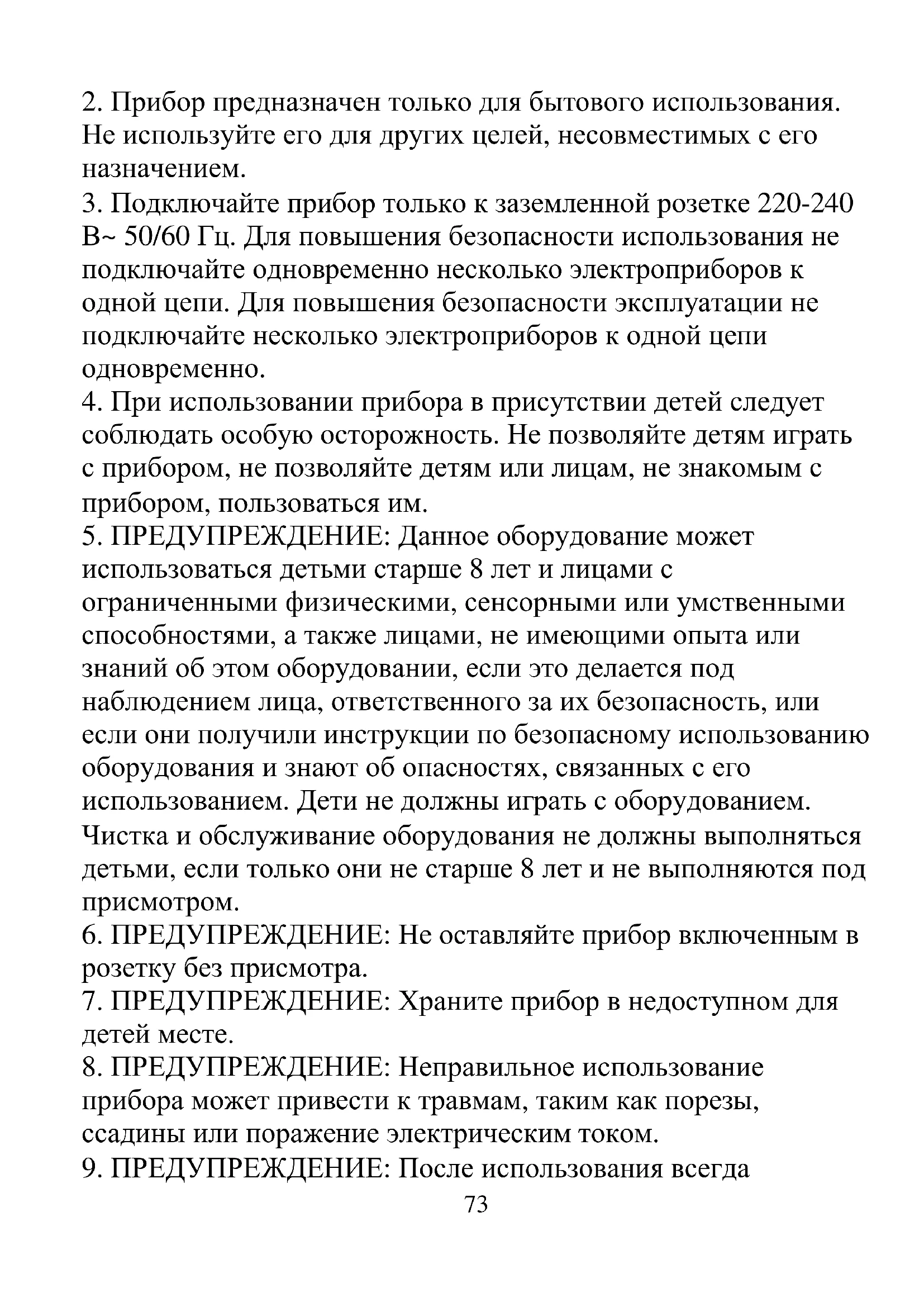 2. Этот прибор предназначен только для бытового использования. Если прибор используется не по