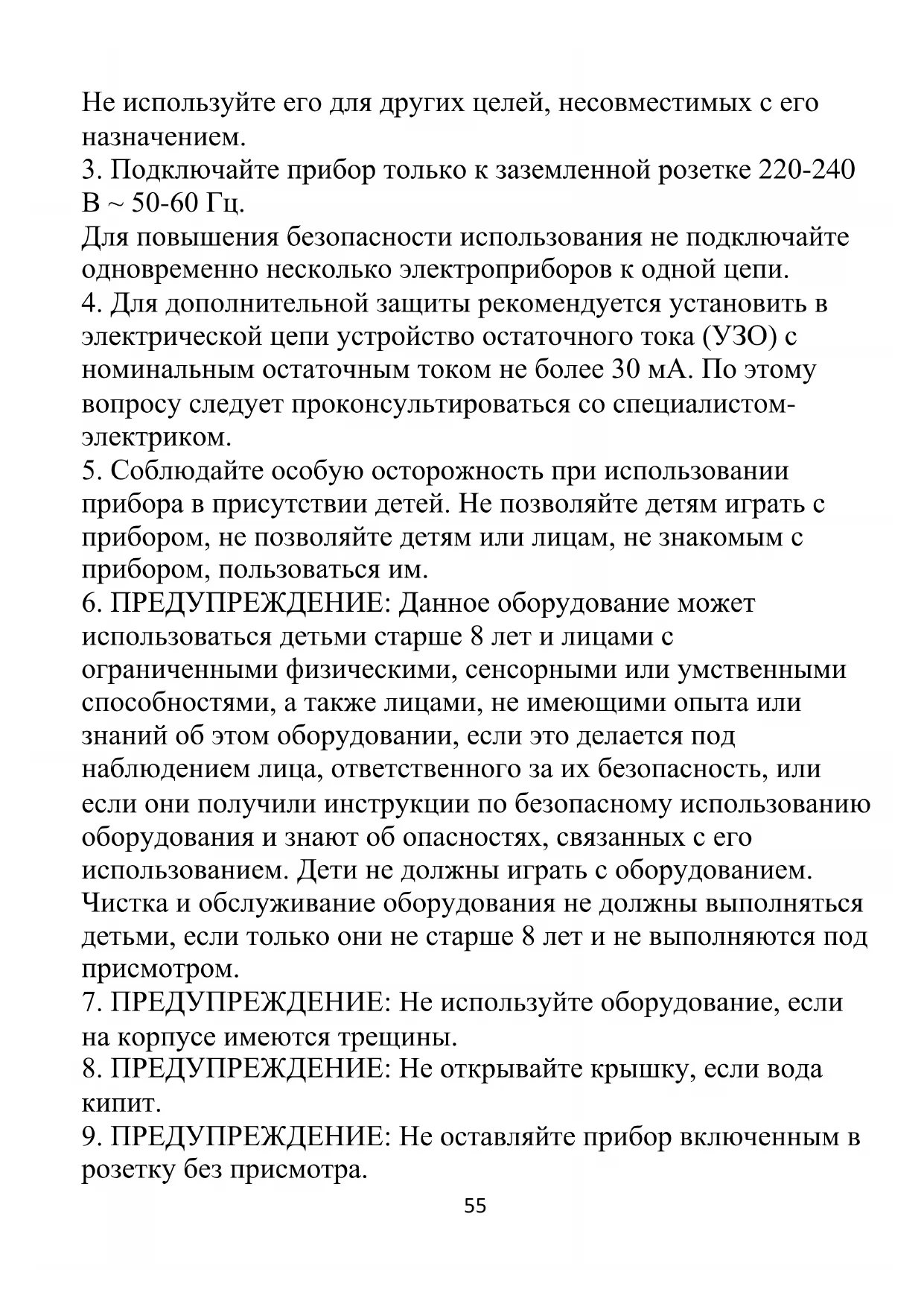 2. Прибор предназначен только для бытового использования.55