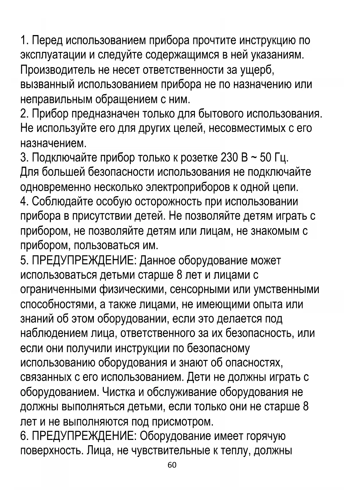 2. Прибор предназначен только для бытового использования.