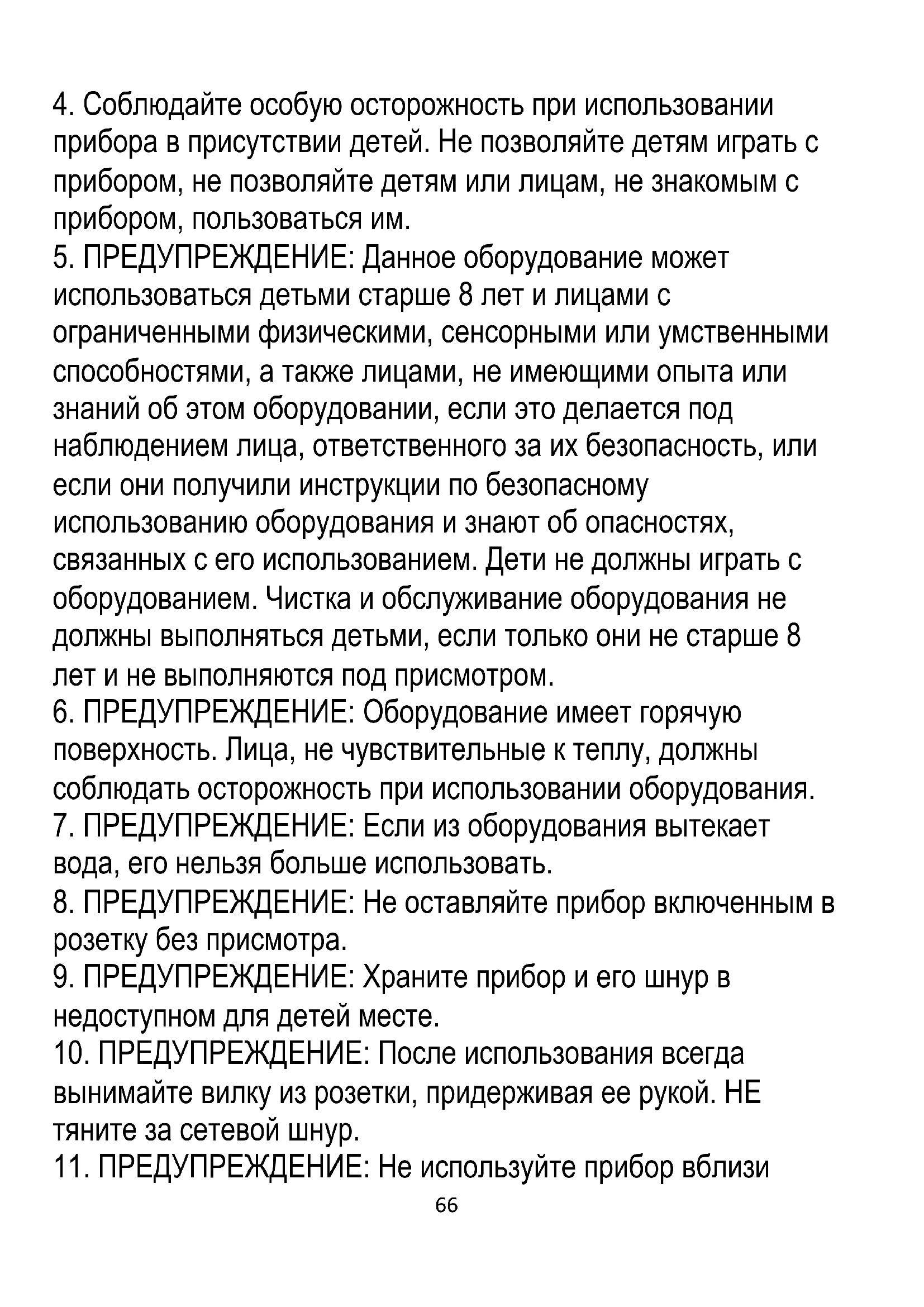 11. ПРЕДУПРЕЖДЕНИЕ: Не используйте прибор вблизи67