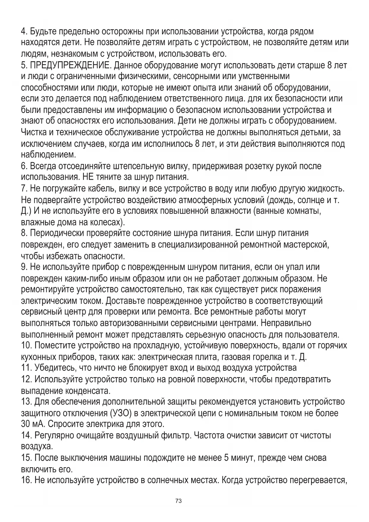 заземлением 220 240 В ~ 50 Гц. Для повышения эксплуатационной безопасности, несколько электрических устройств не должны быть подключены к одной цепи тока одновременно.73