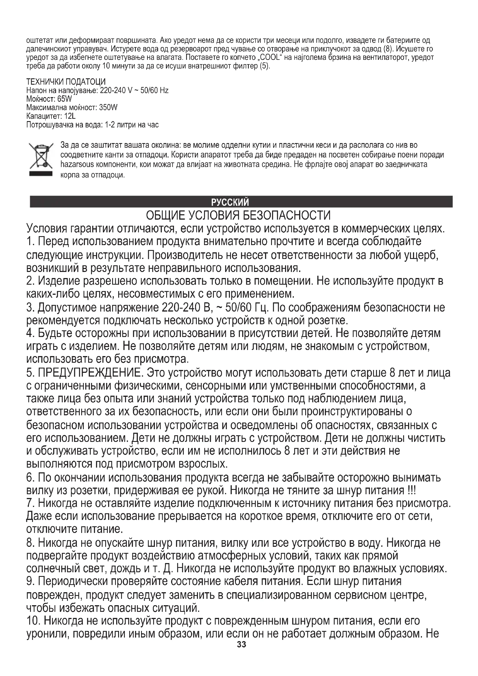 5. ПРЕДУПРЕЖДЕНИЕ. Это устройство могут использовать дети старше 8 лет и лица