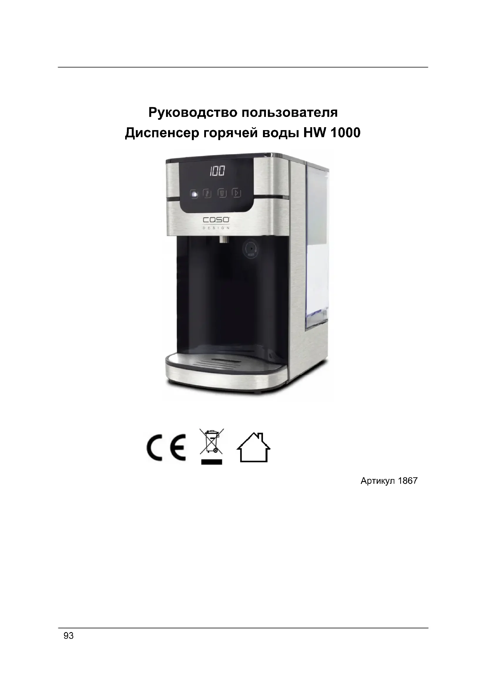 Руководство пользователя Диспенсер горячей воды HW 1000