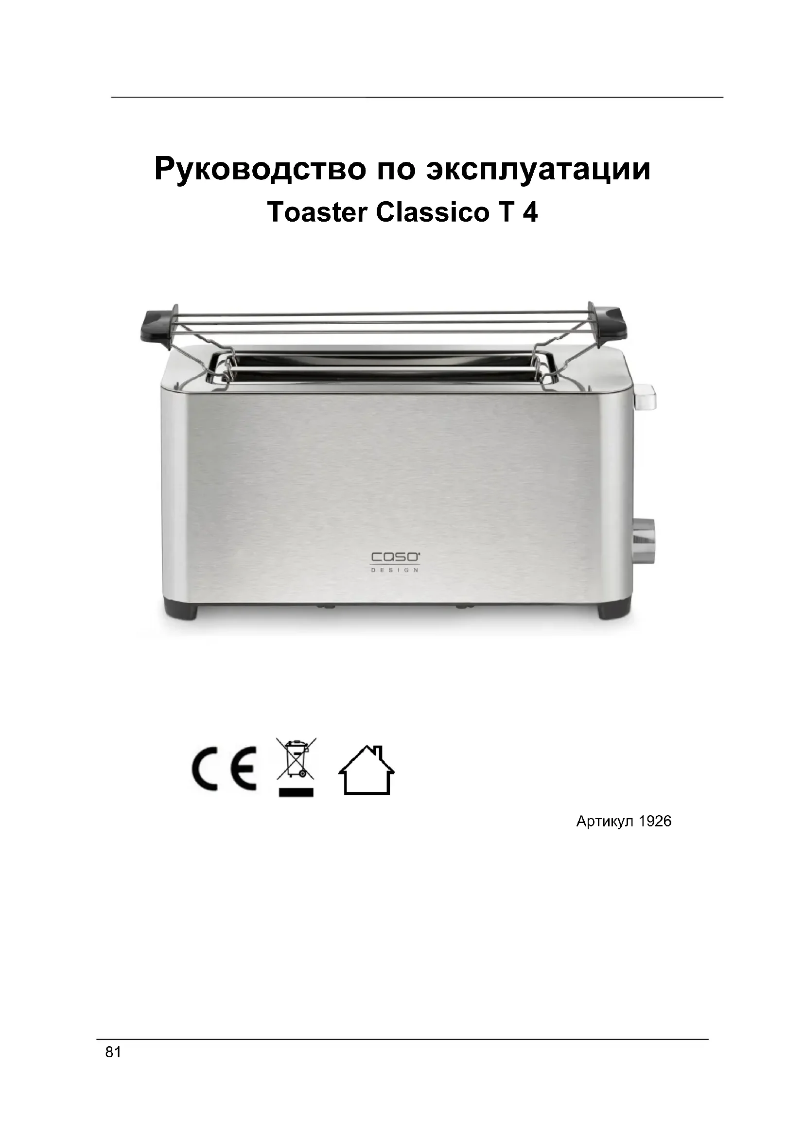Classico T4 - тостер CASO - Бесплатное руководство пользователя