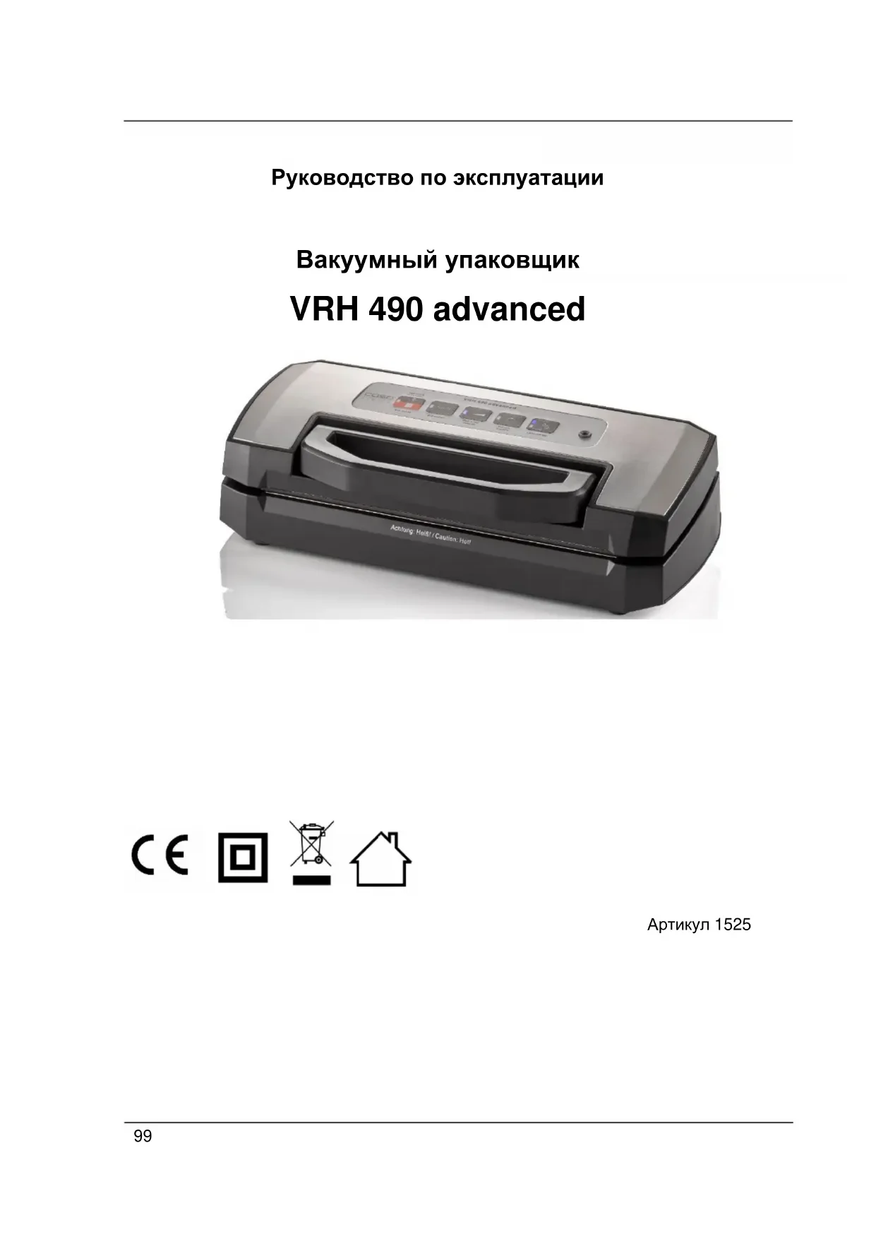 VRH 490 advanced - вакуумные упаковочные машины CASO - Бесплатное руководство пользователя
