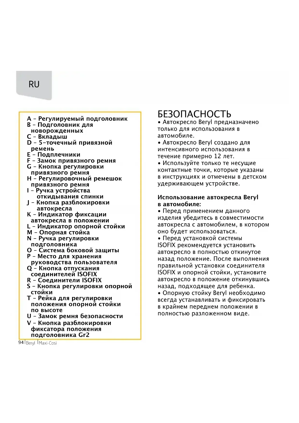 - Используйте только те несущие контактные точки, которые указаны в инструкциях и отмечены в детском удерживающем устройстве. Использование автокресла Beryl в автомобиле: