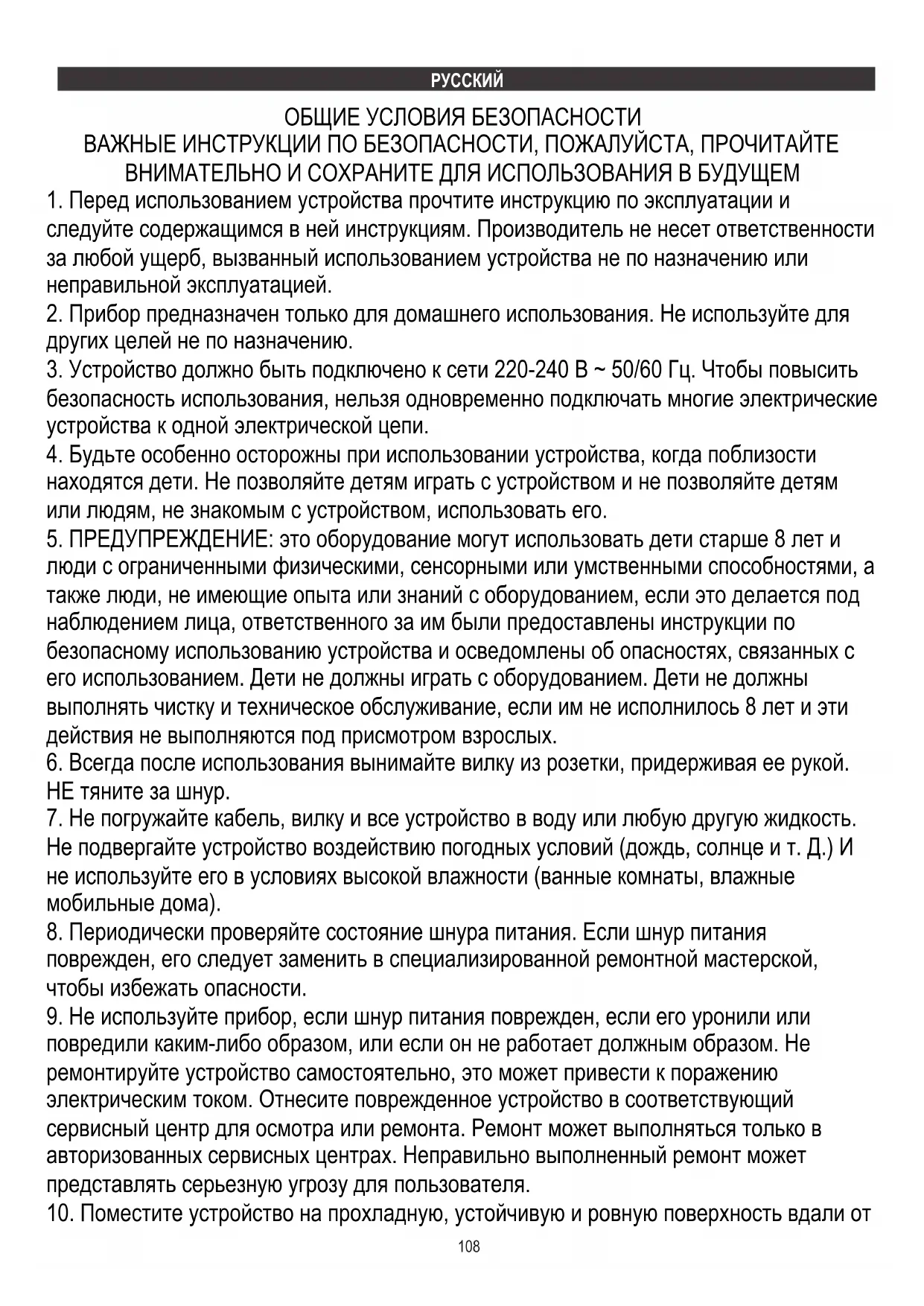 5. ПРЕДУПРЕЖДЕНИЕ: это оборудование могут использовать дети старше 8 лет и