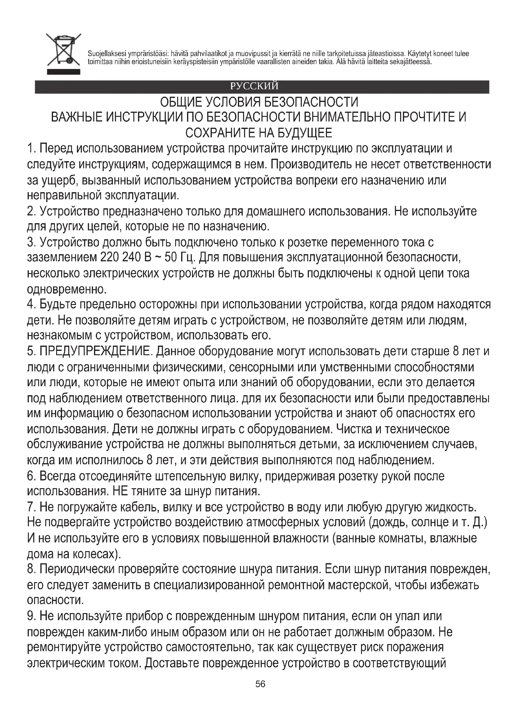 5. ПРЕДУПРЕЖДЕНИЕ. Данное оборудование могут использовать дети старше 8 лет и
