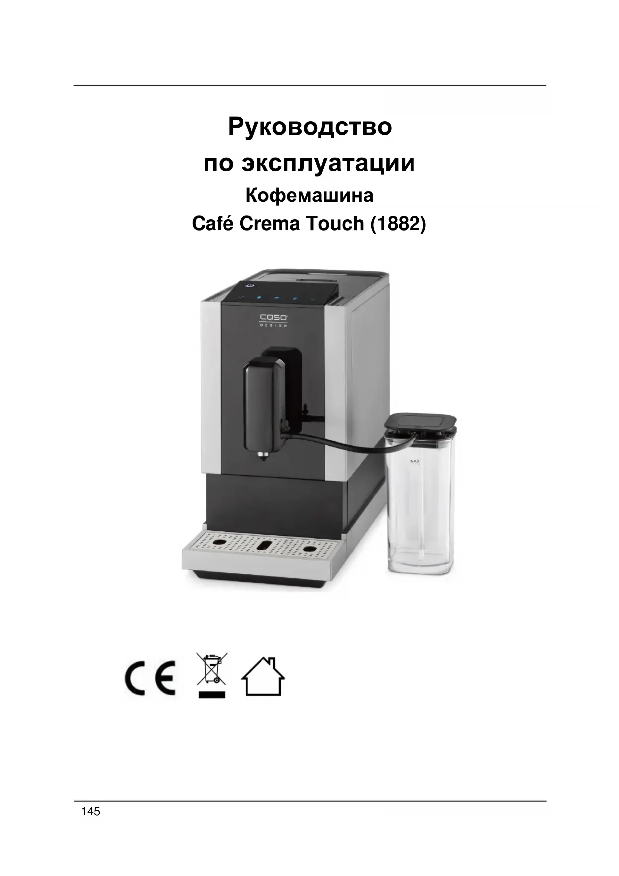 РУКОВОДСТВО ПОЛЬЗОВАТЕЛЯ Café Crema Touch 1882 CASO