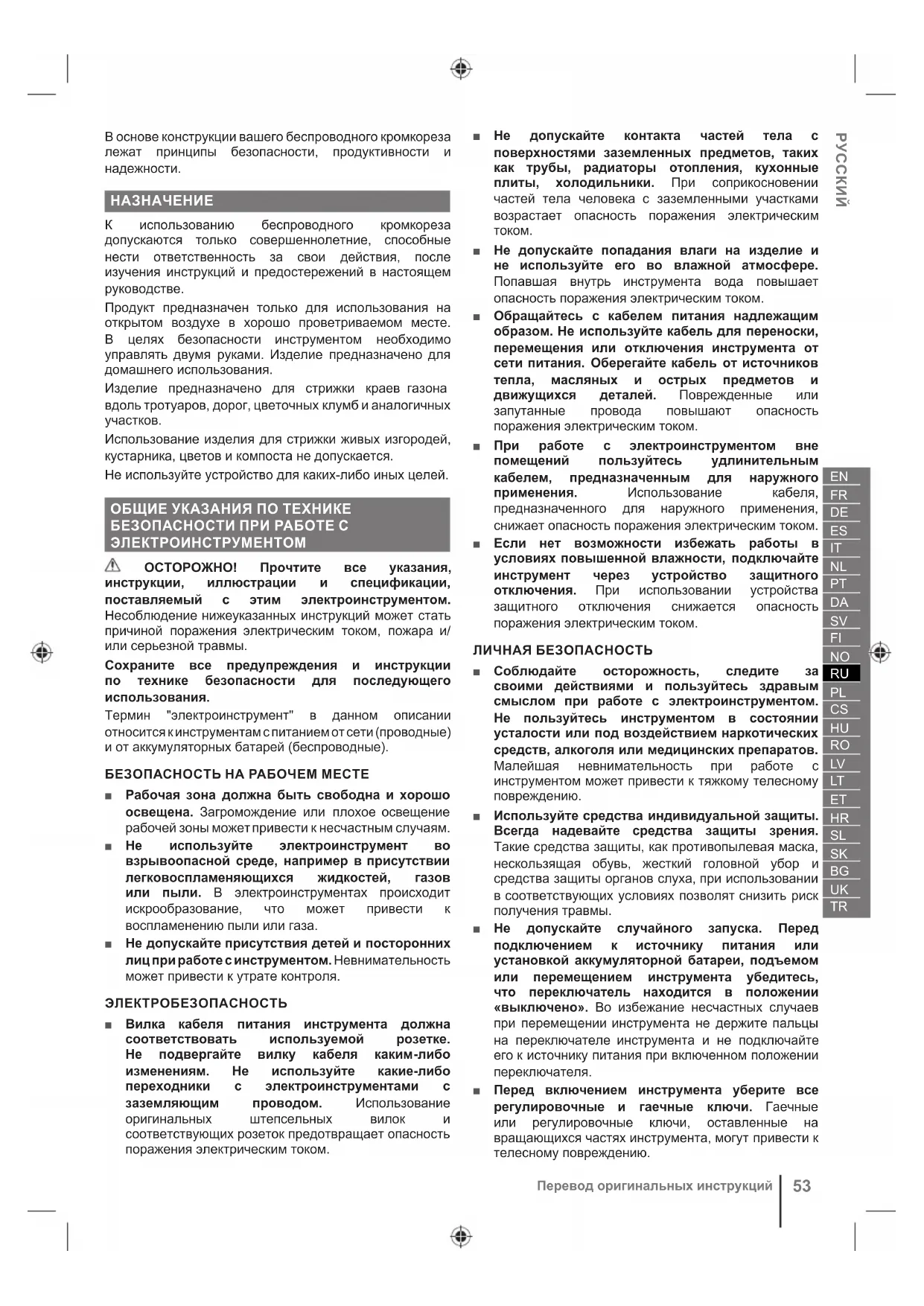 Перевод оригинальных инструкций