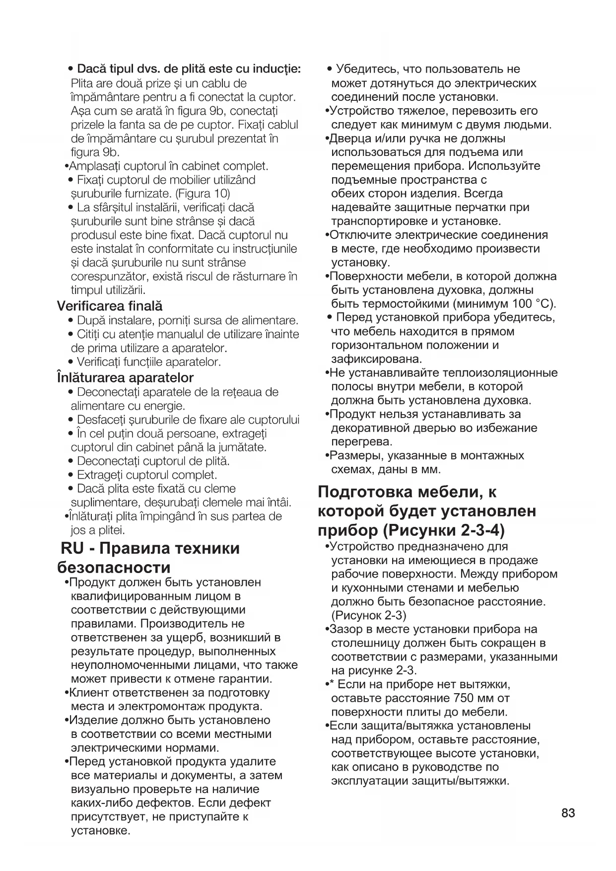 - Устройство предназначено для установки на имеющиеся в продаже рабочие поверхности. Между прибором и кухонными стенами и мебелью должно быть безопасное расстояние. (Рисунок 2-3)