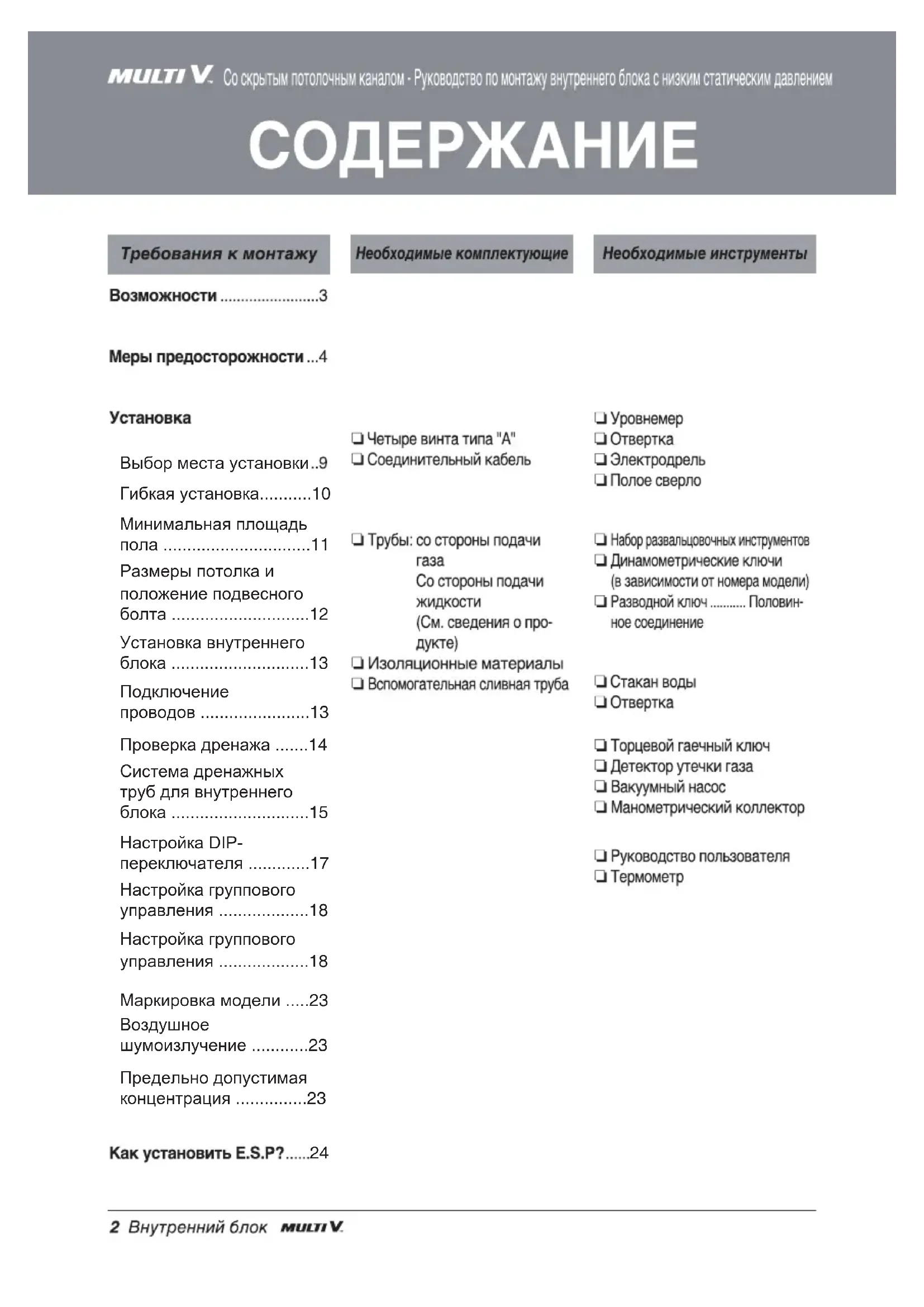 шумоизлучение ............23 Система дренажных труб для внутреннего блока .............................15 24Руководство по монтажу 3