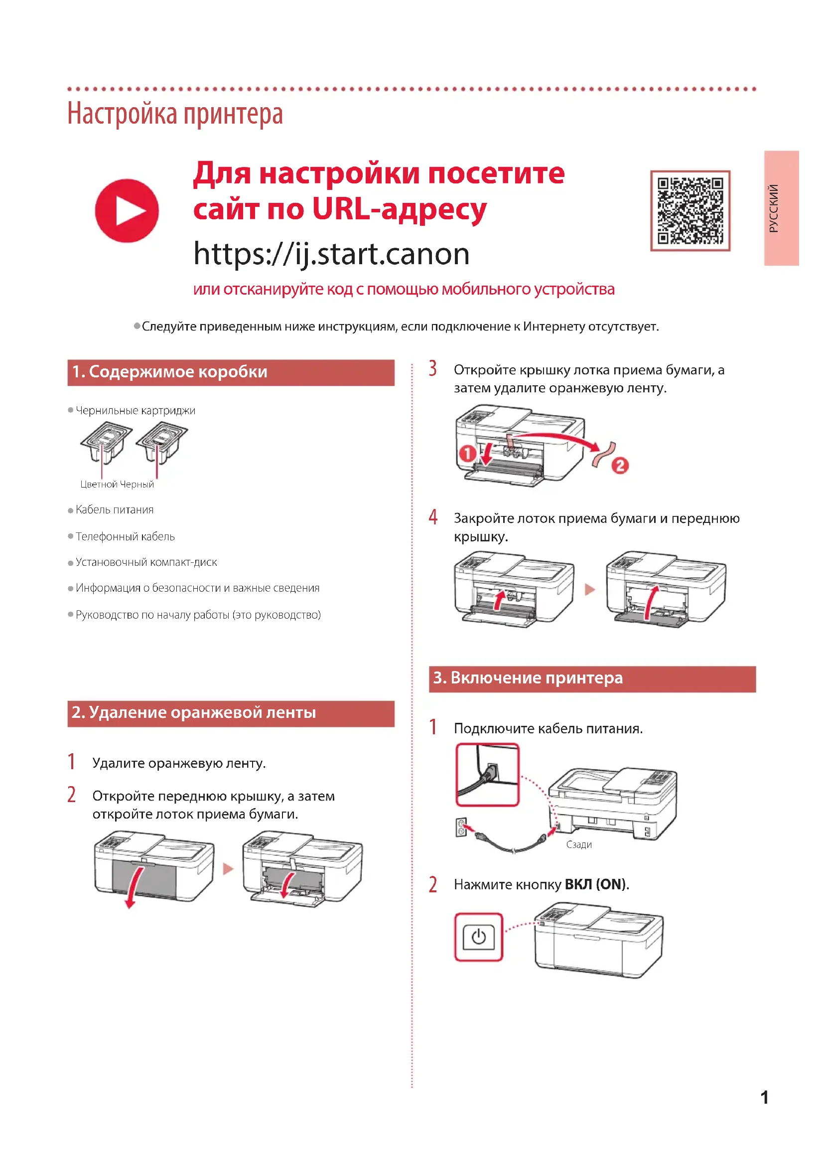 Следуйте приведенным ниже инструкциям, если подключение к Интернету отсутствует.2 Настройка принтера