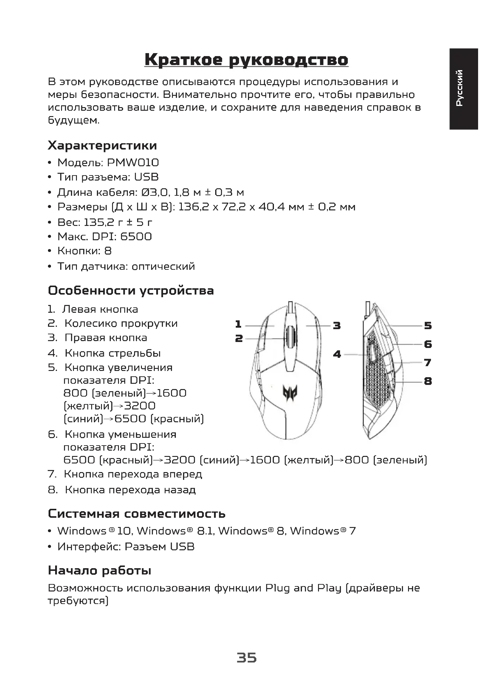 Predator Cestus 315 - мышь ACER - Бесплатное руководство пользователя