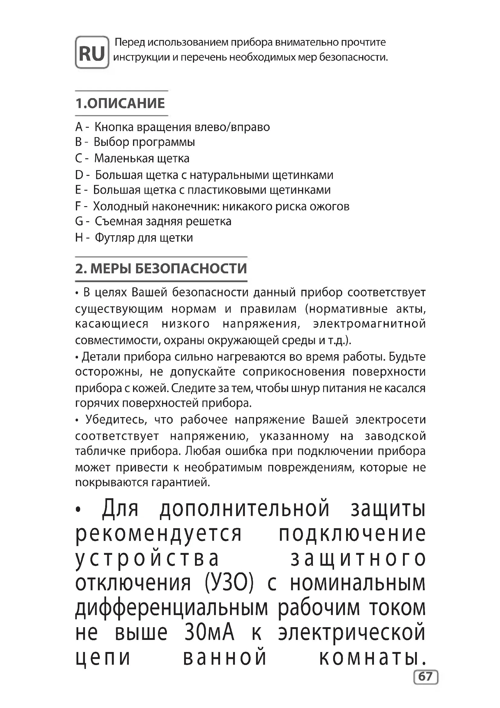 AR67 Перед использованием прибора внимательно прочтите инструкции и перечень необходимых мер безопасности.