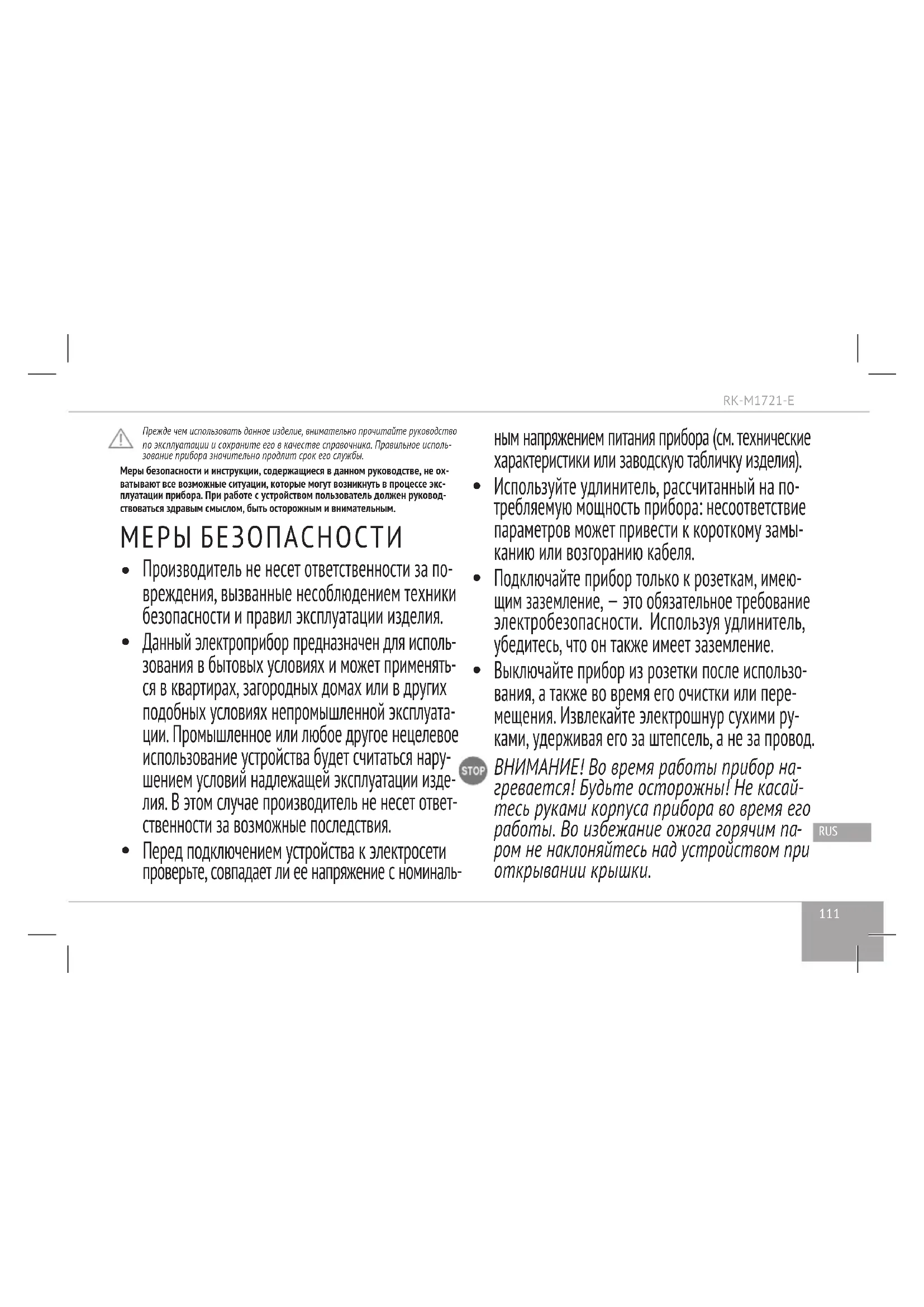 РУКОВОДСТВО ПОЛЬЗОВАТЕЛЯ RKM1721E Redmond