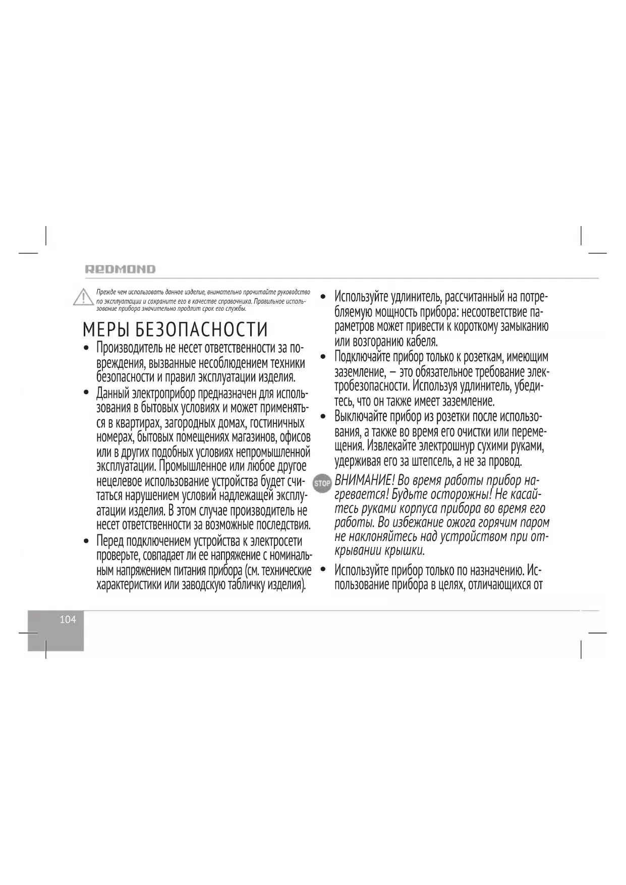 РУКОВОДСТВО ПОЛЬЗОВАТЕЛЯ RKG168E Redmond