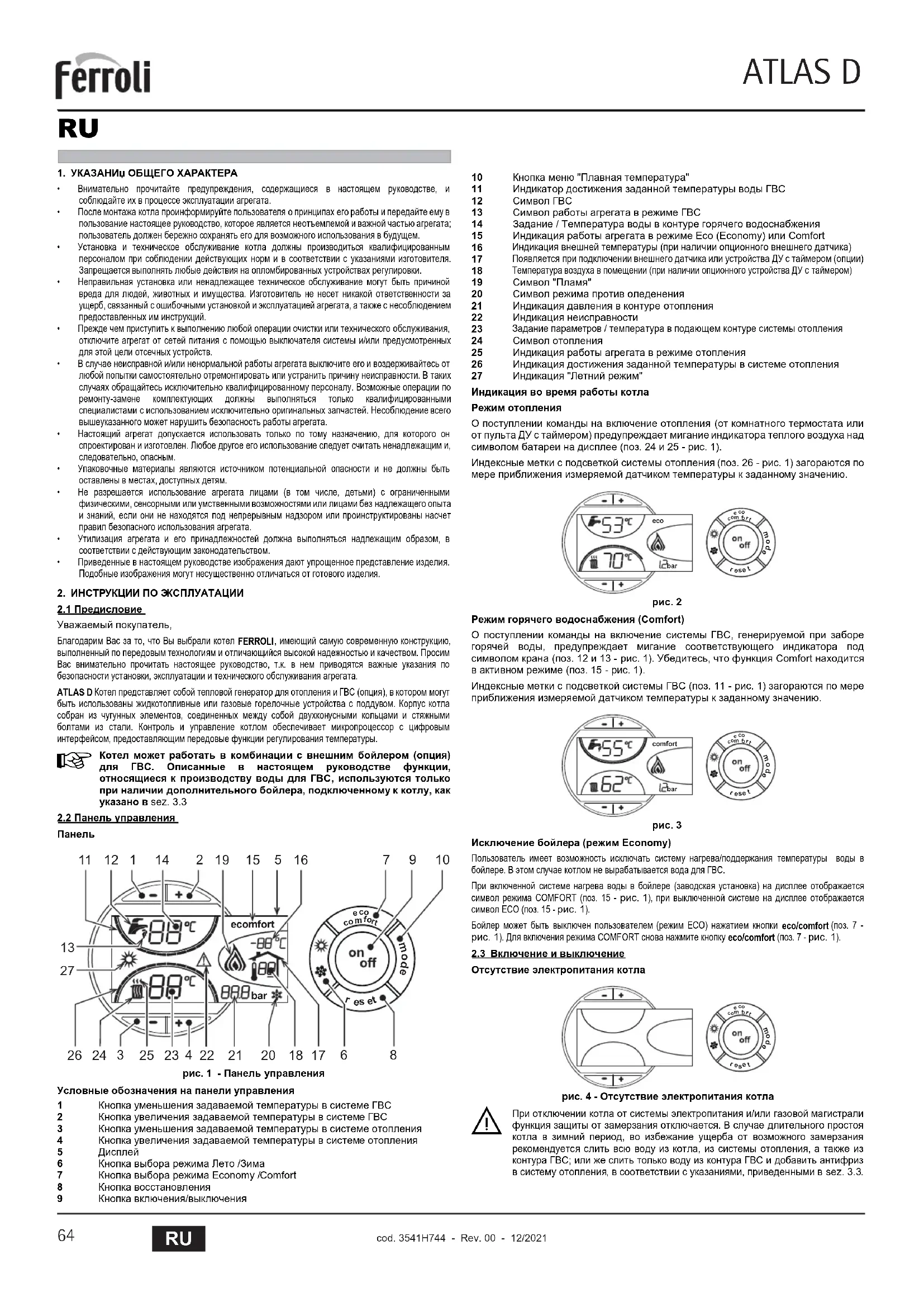 РУКОВОДСТВО ПОЛЬЗОВАТЕЛЯ Atlas D FERROLI