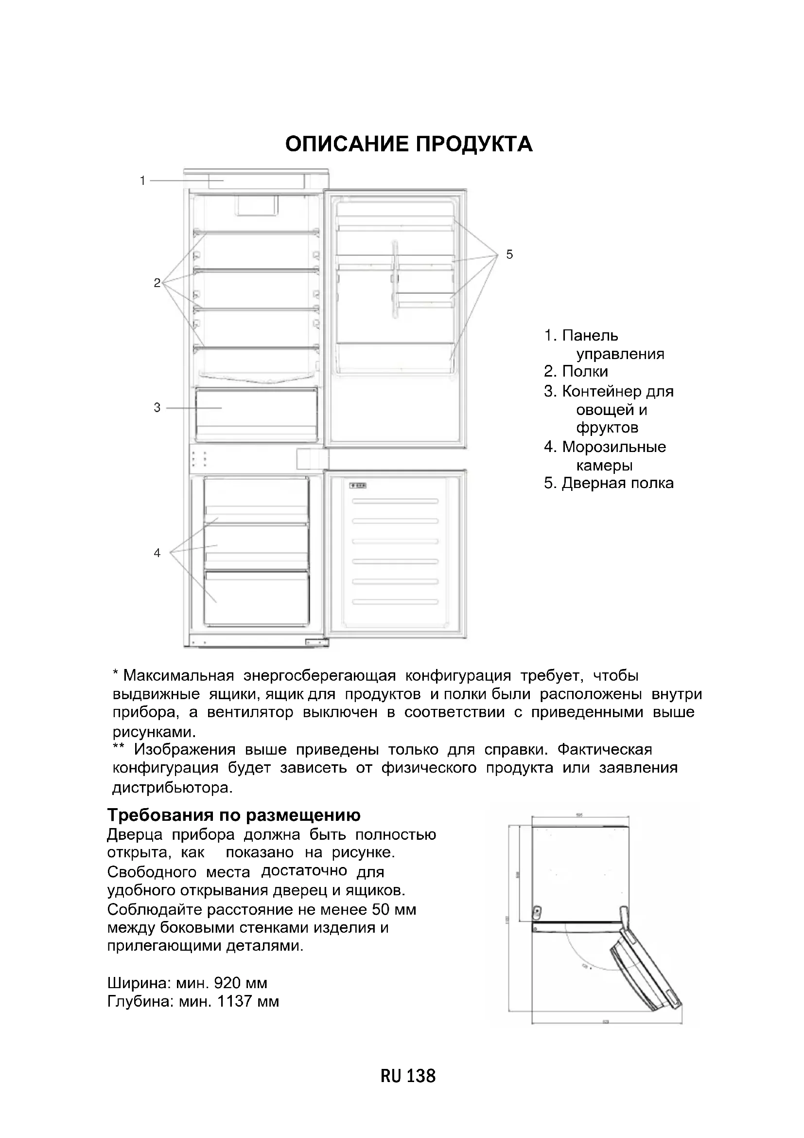 - Максимальная энергосберегающая конфигурация требует, чтобы выдвижные ящики, ящик для продуктов и полки были расположены внутри прибора, а вентилятор выключен в соответствии с приведенными выше