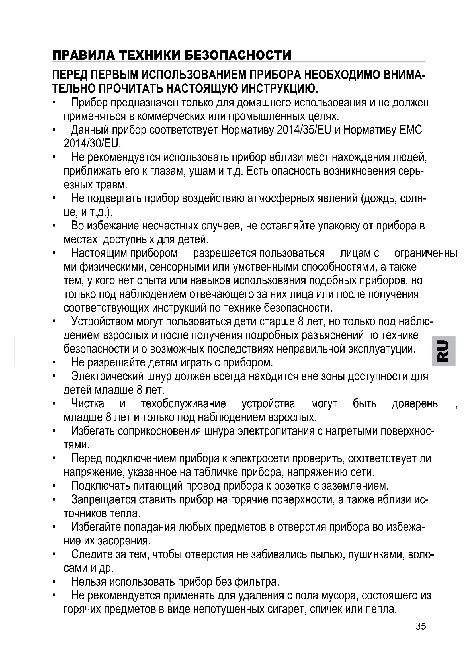 Правила техники безоПасности Перед Первым исПользованием Прибора необходимо внима- тельно Прочитать настоящую инструкцию.