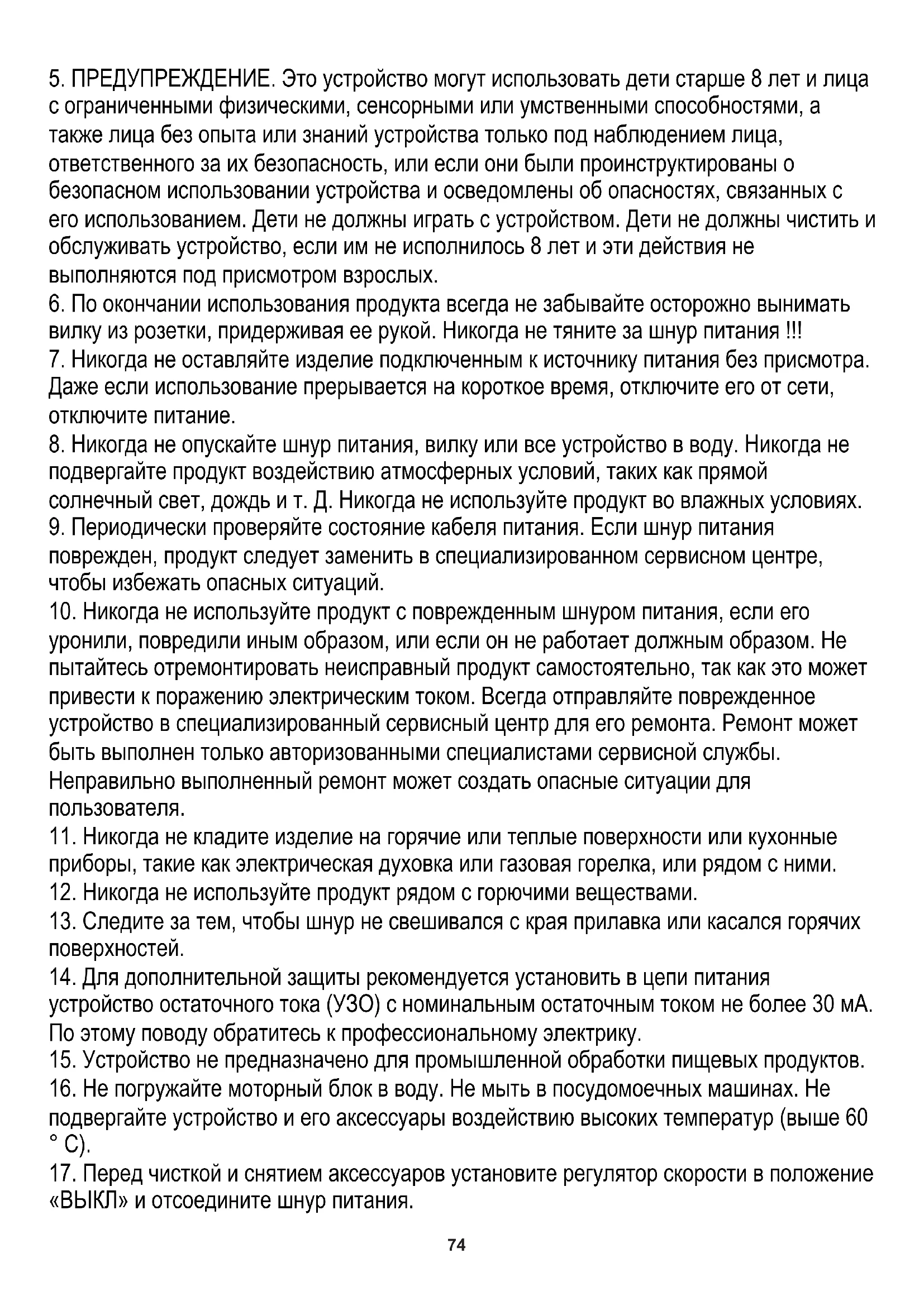 5. ПРЕДУПРЕЖДЕНИЕ. Это устройство могут использовать дети старше 8 лет и лица