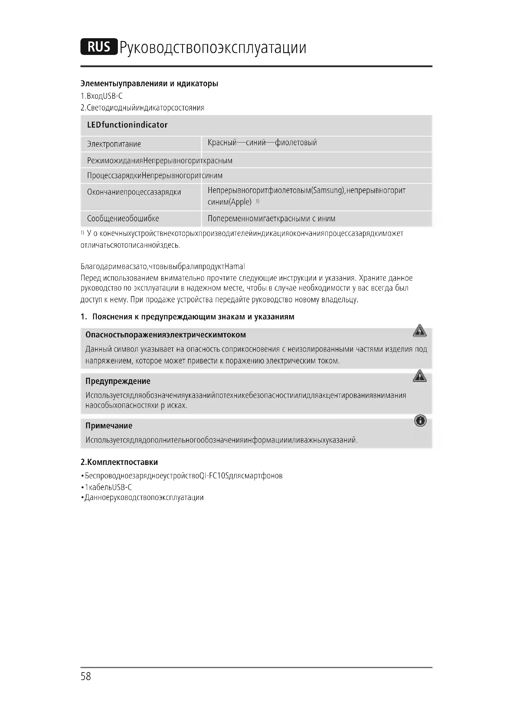 Уоконечных устройств некоторых производителей индикация окончания процесса зарядки может отличаться от описанной здесь. Благодарим вас за то, что вы выбрали продукт Hama! Перед использованием внимательно прочтите следующие инструкции иуказания. Храните данное руководство по эксплуатации внадежном месте, чтобы вслучае необходимости увас всегда был доступ кнему. При продаже устройства передайте руководство новому владельцу.
