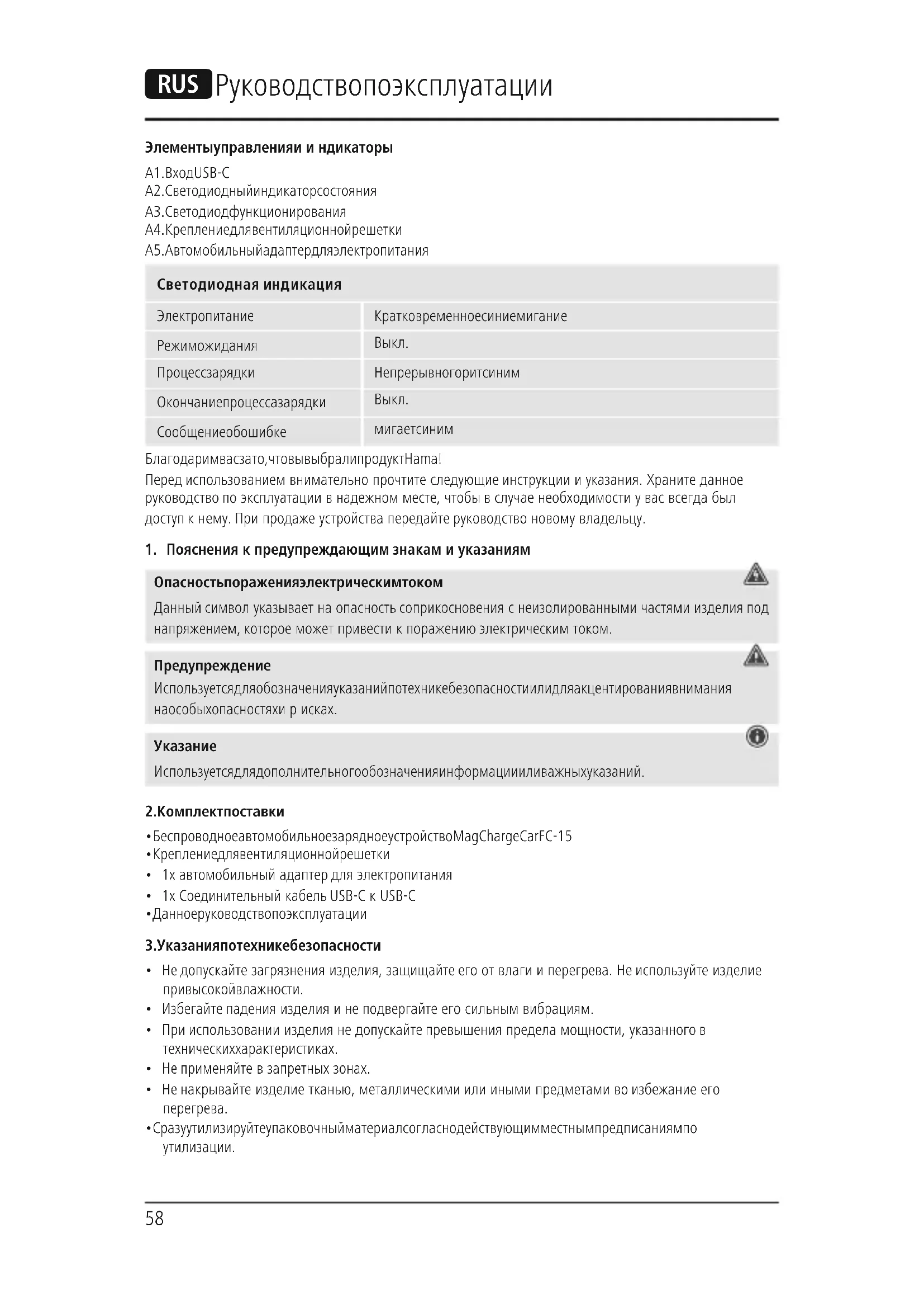 РУКОВОДСТВО ПОЛЬЗОВАТЕЛЯ MagCharge Car FC15 HAMA
