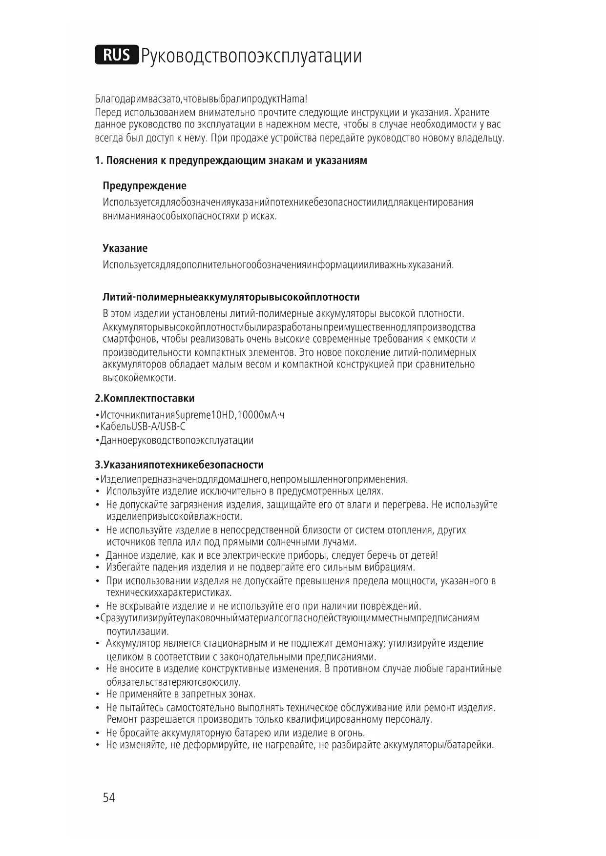 Supreme 10HD 00187291 - Портативный аккумулятор HAMA - Бесплатное руководство пользователя