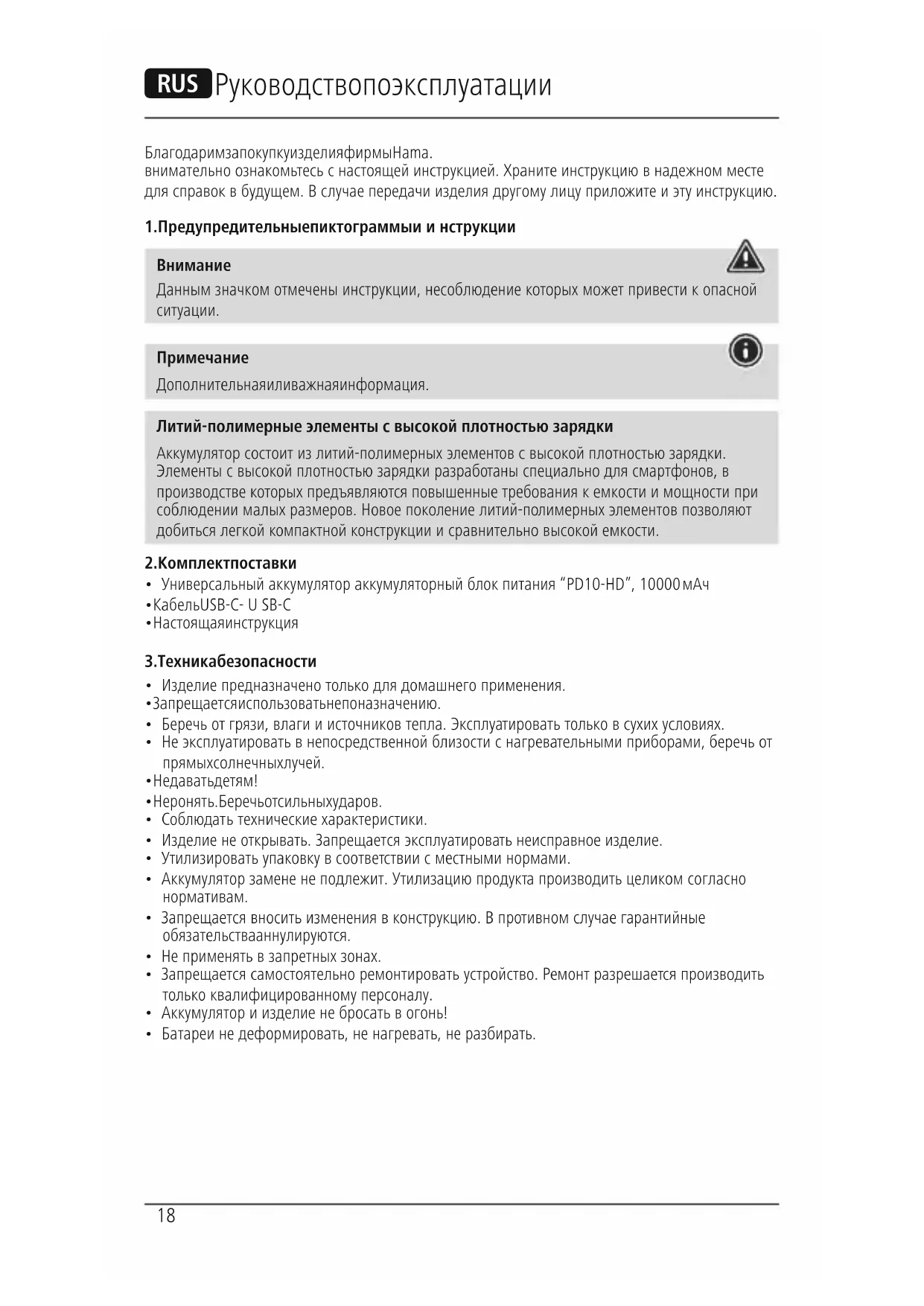 Скачайте инструкцию для вашего Портативный аккумулятор в формате PDF бесплатно! Найдите своё руководство PD10HD 00187261 - HAMA и возьмите своё электронное устройство обратно в руки. На этой странице опубликованы все документы, необходимые для использования вашего устройства. PD10HD 00187261 бренда HAMA.