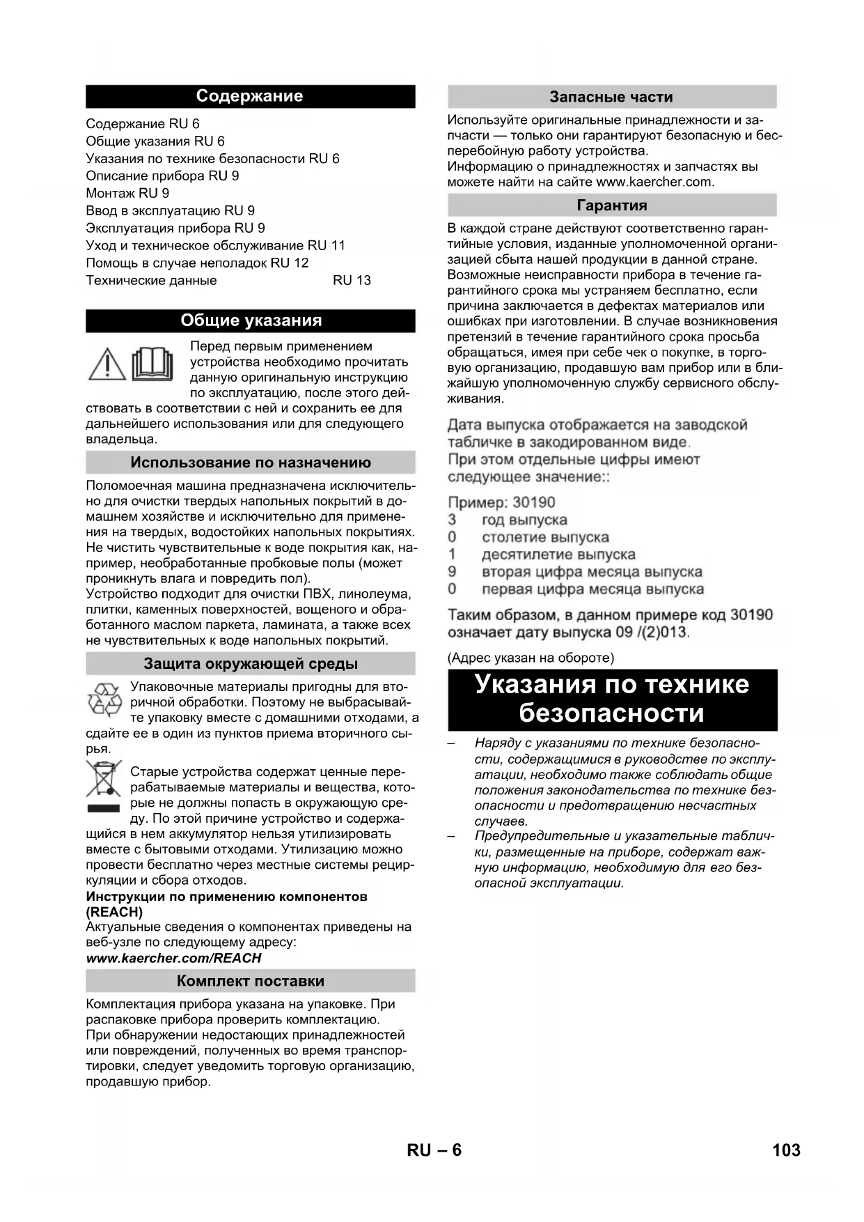 Указания по технике безопасности 103RU– 7