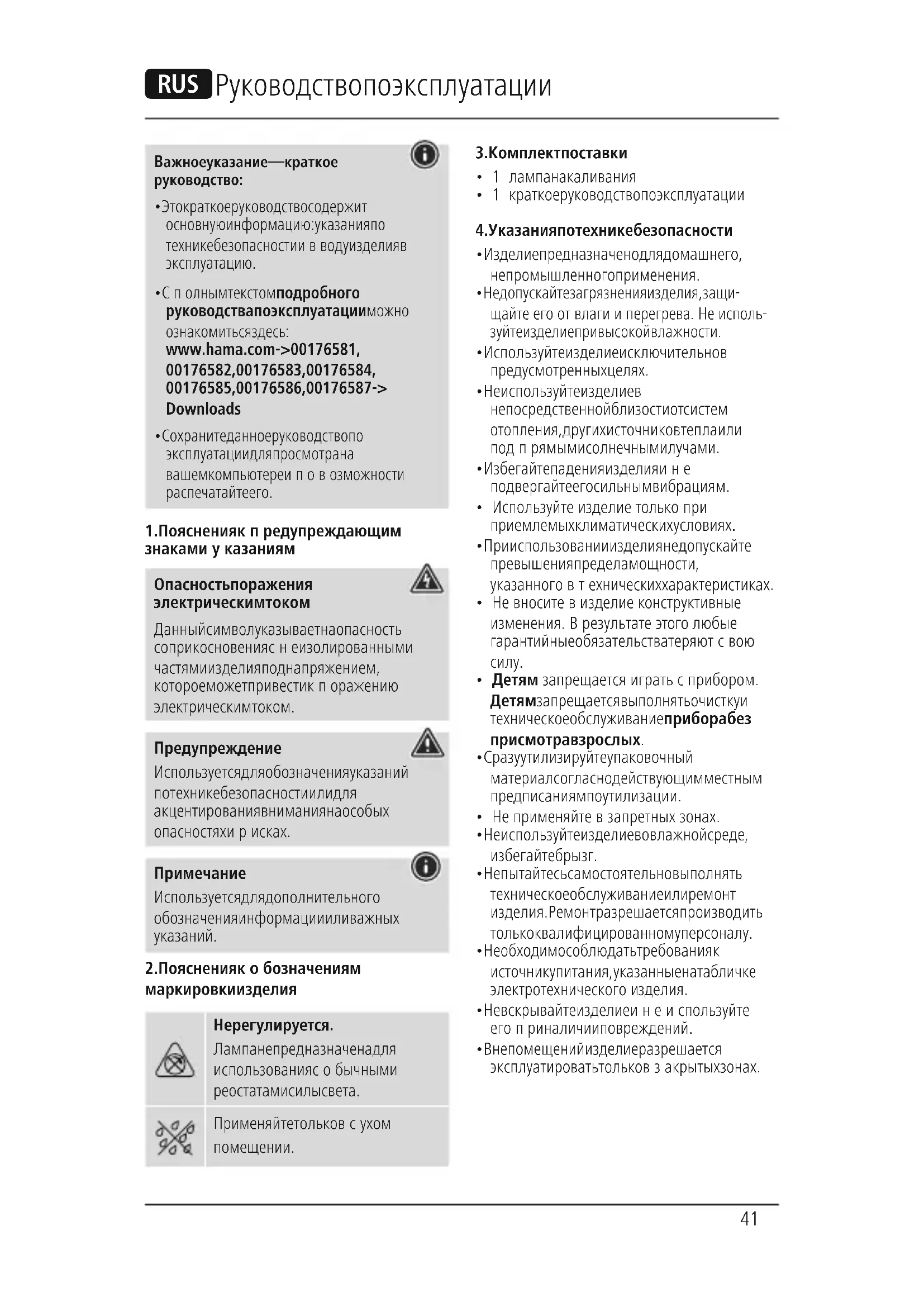 00176581 - Освещение HAMA - Бесплатное руководство пользователя