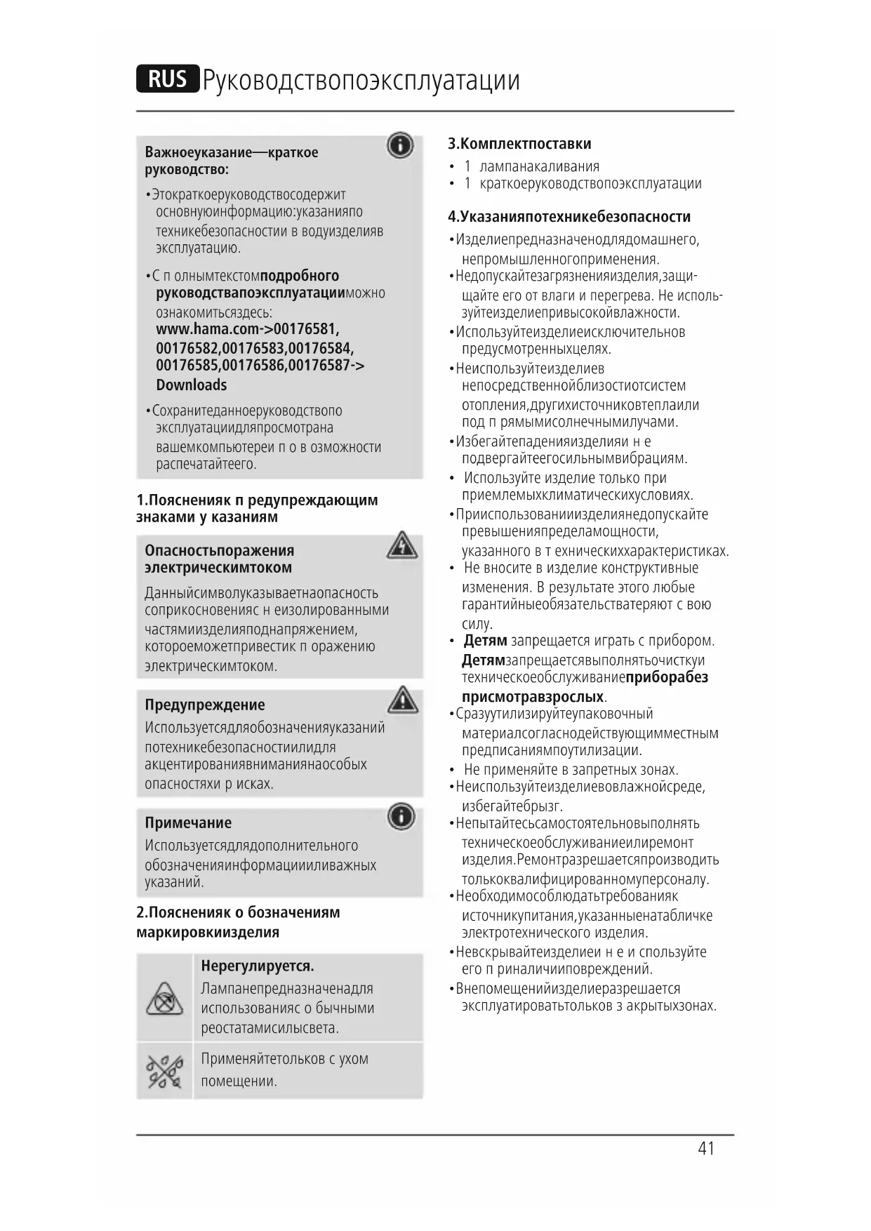 00176583 - Освещение HAMA - Бесплатное руководство пользователя
