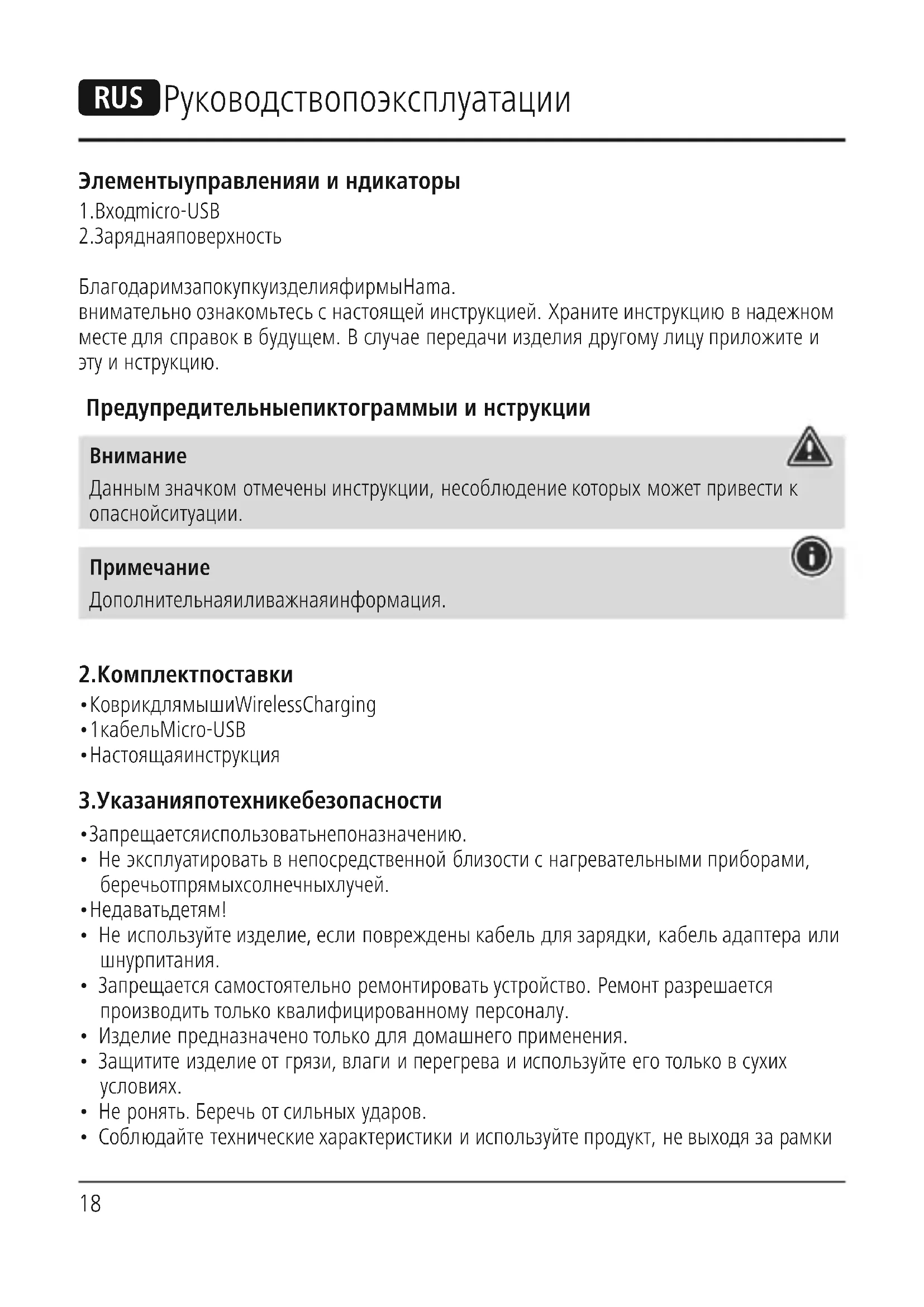 Благодарим за покупку изделия фирмы Hama. внимательно ознакомьтесь снастоящей инструкцией. Храните инструкцию внадежном месте для справок вбудущем. Вслучае передачи изделия другому лицу приложите и этуинструкцию. Предупредительные пиктограммы иинструкции