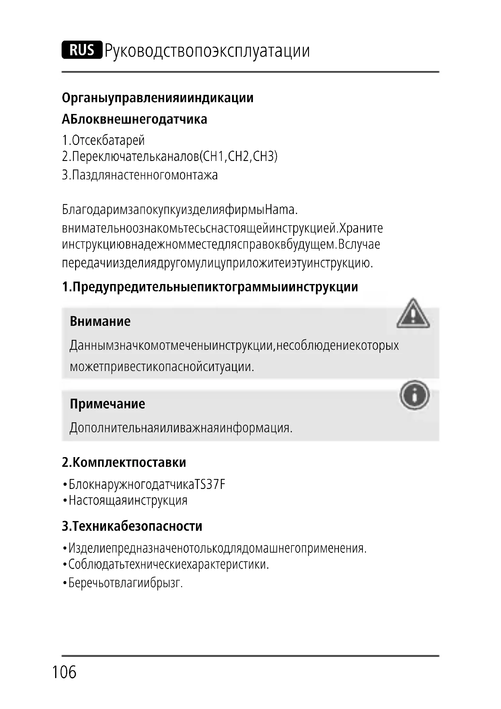 РУКОВОДСТВО ПОЛЬЗОВАТЕЛЯ TS37F HAMA