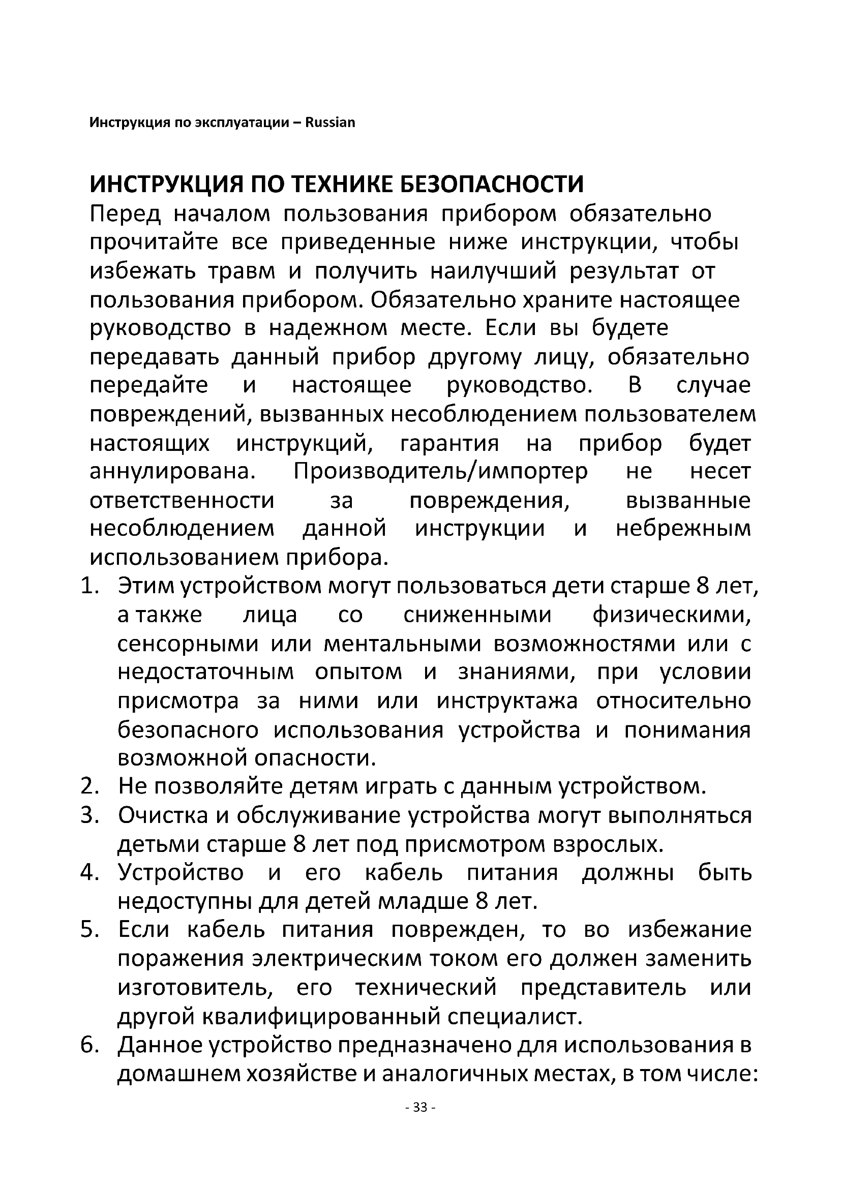 первом включении устройства может выделяться дым и характерный запах. Это нормально, и быстро прекратится. ИНСТРУКЦИЯ ПО ЭКСПЛУАТАЦИИ