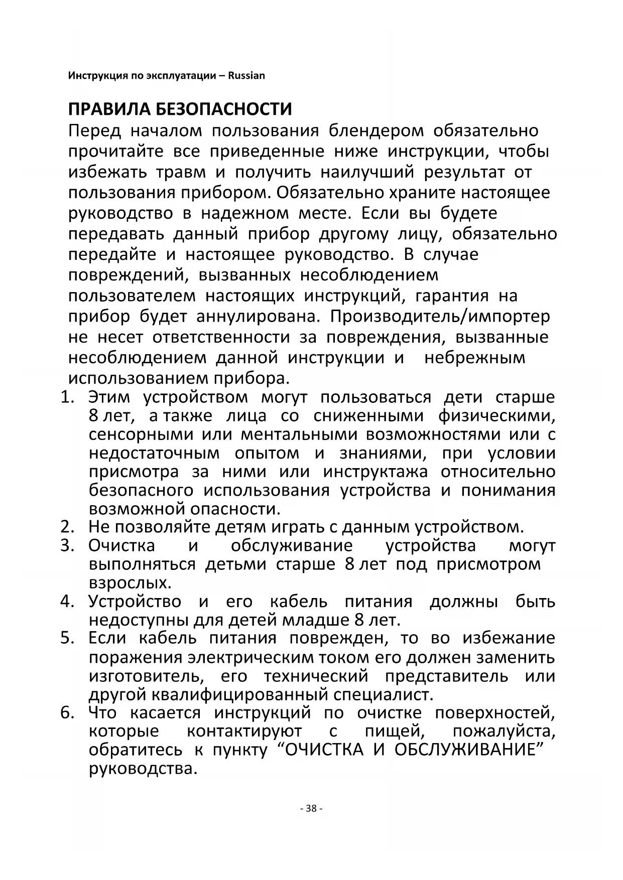 которые контактируют с пищей, пожалуйста, обратитесь к пункту “ОЧИСТКА И ОБСЛУЖИВАНИЕ” руководства.- 39 -