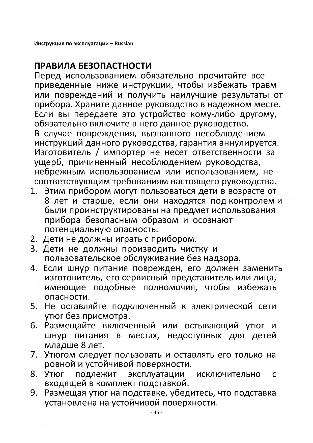 8. Утюг подлежит эксплуатации исключительно с