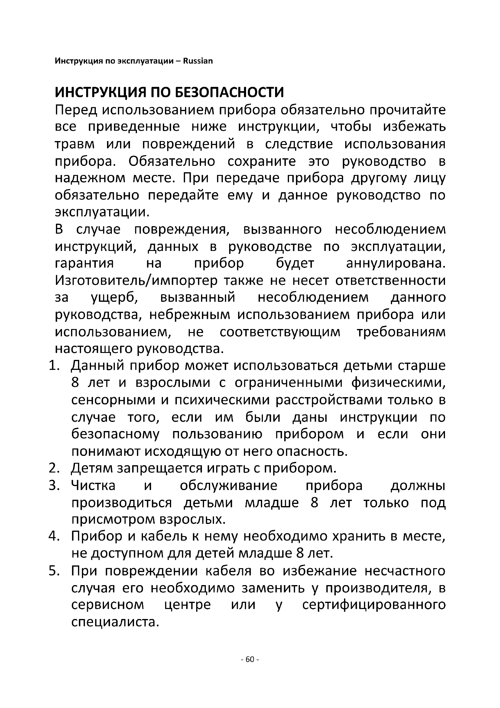 2. Детям запрещается играть с прибором.