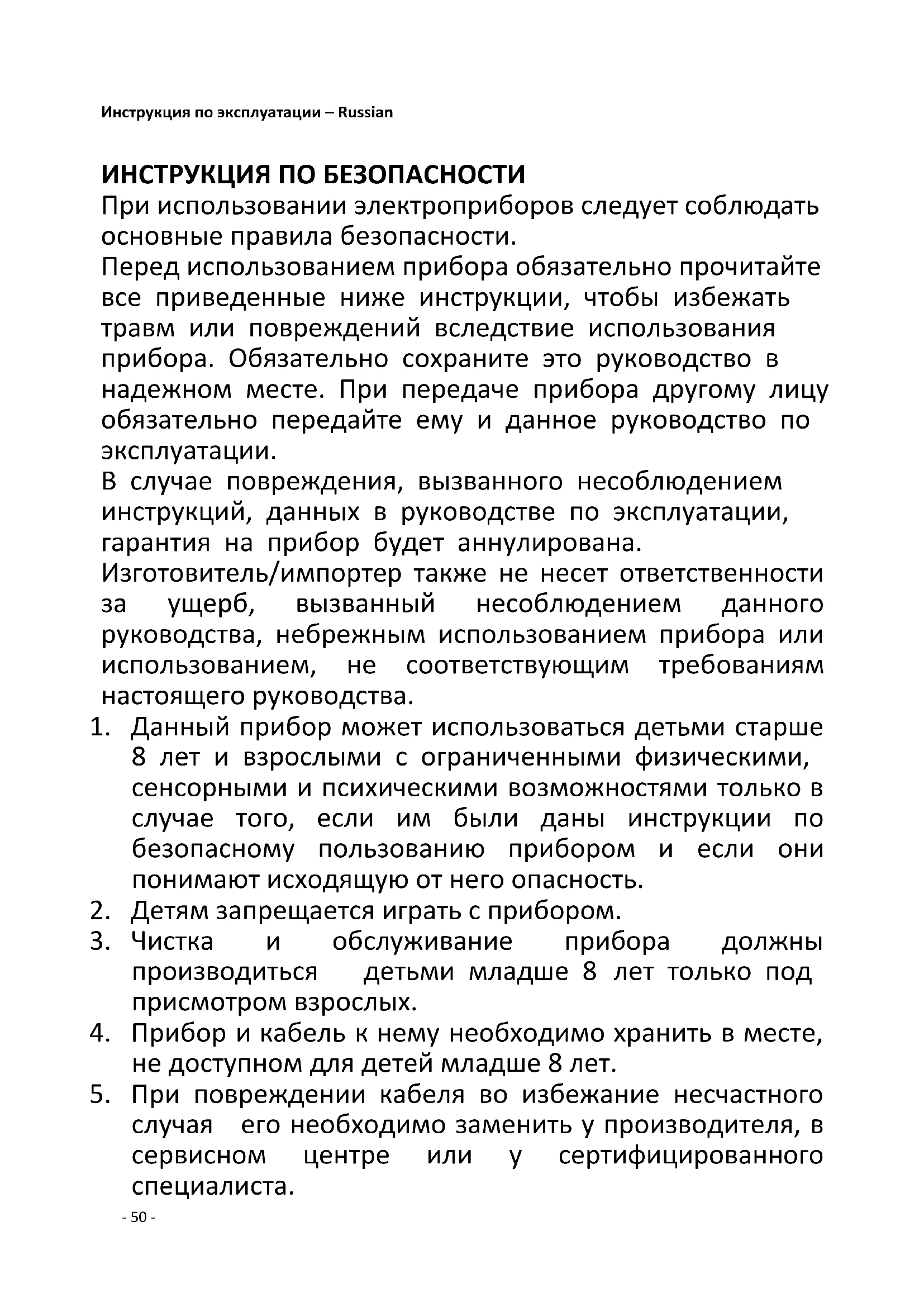 5. При повреждении кабеля во избежание несчастного