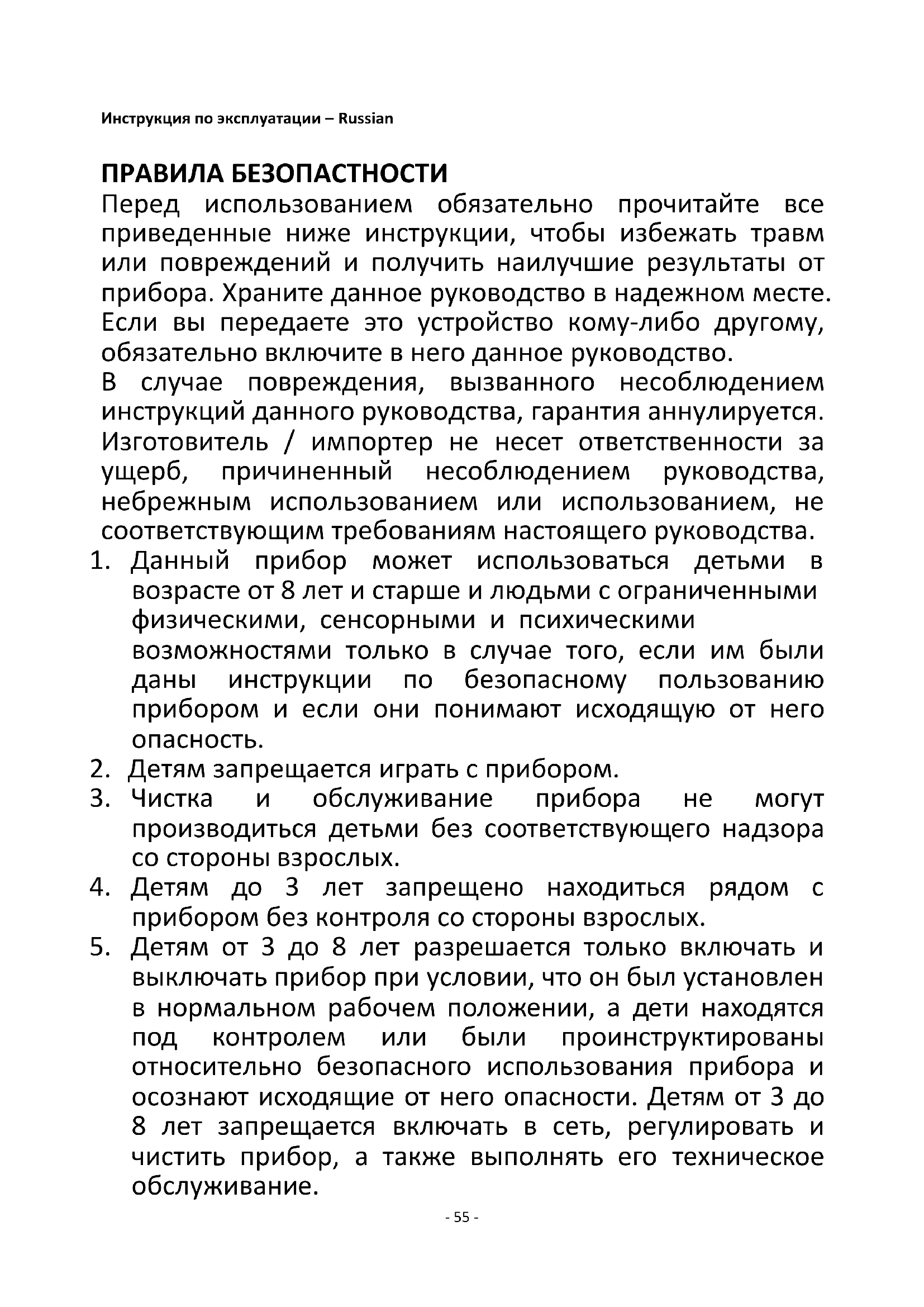 2. Детям запрещается играть с прибором.