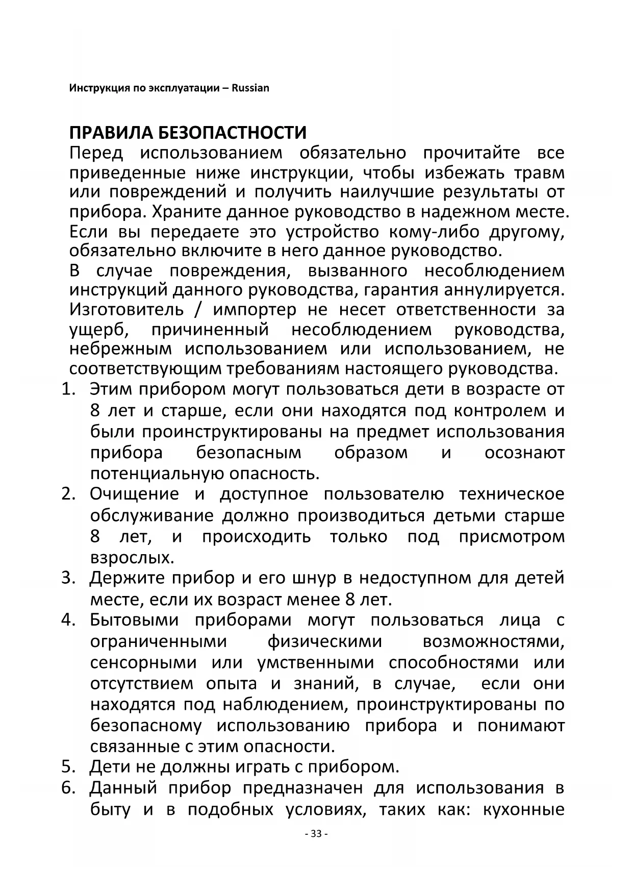 25. Не эксплуатируйте прибор без воды, чтобы избежать