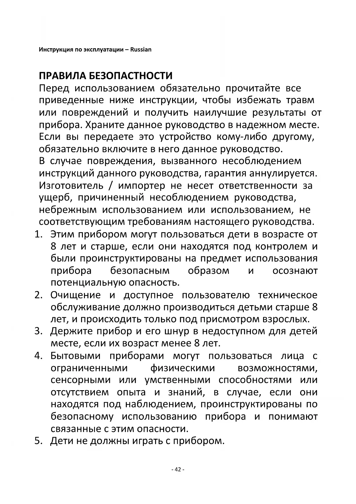 5. Дети не должны играть с прибором.- 43 -